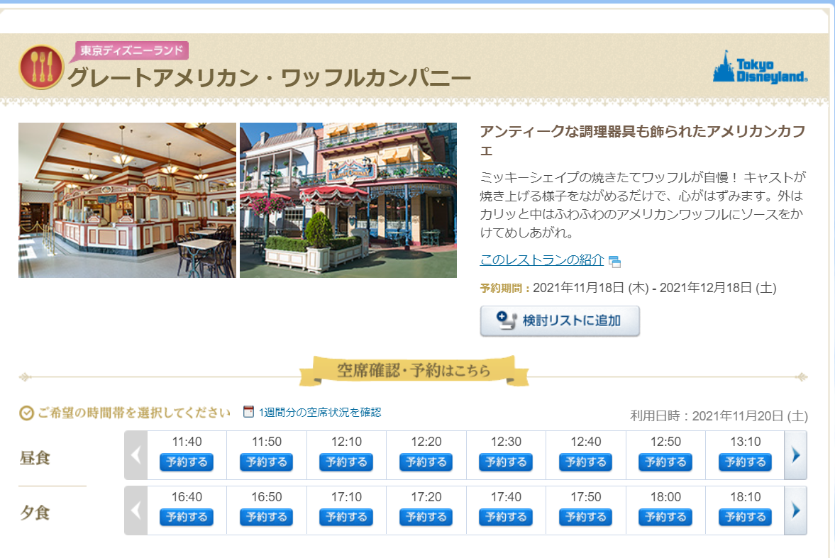 ディズニーランド ミッキーワッフルのグレートアメリカン・ワッフルカンパニー