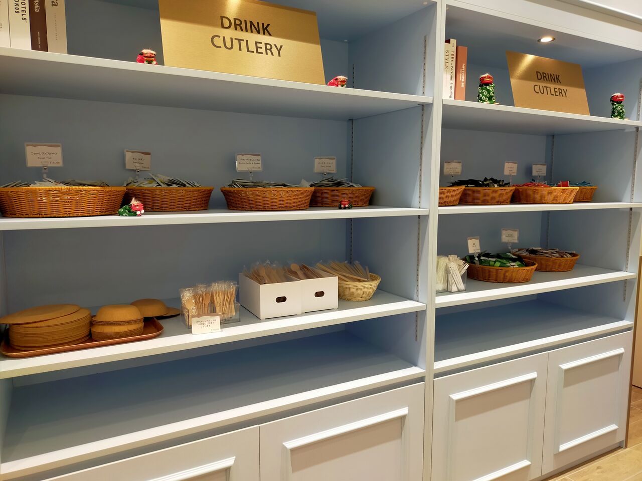このスペースの新設により、お部屋のアメニティは歯ブラシなどごく限られたものだけ。