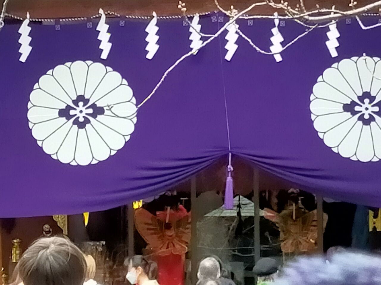 丁度、結婚式をやっていて蝶の衣装を着た巫女さんが豊寿舞(とよほぎのまい)を舞っていました。