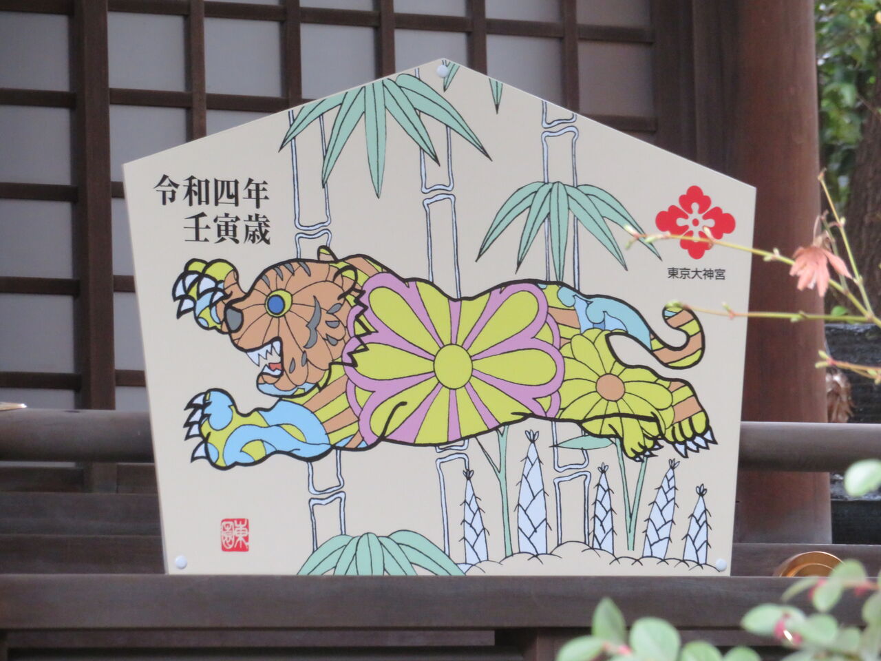 干支の絵馬はパステルカラーを使ったかわいい虎。