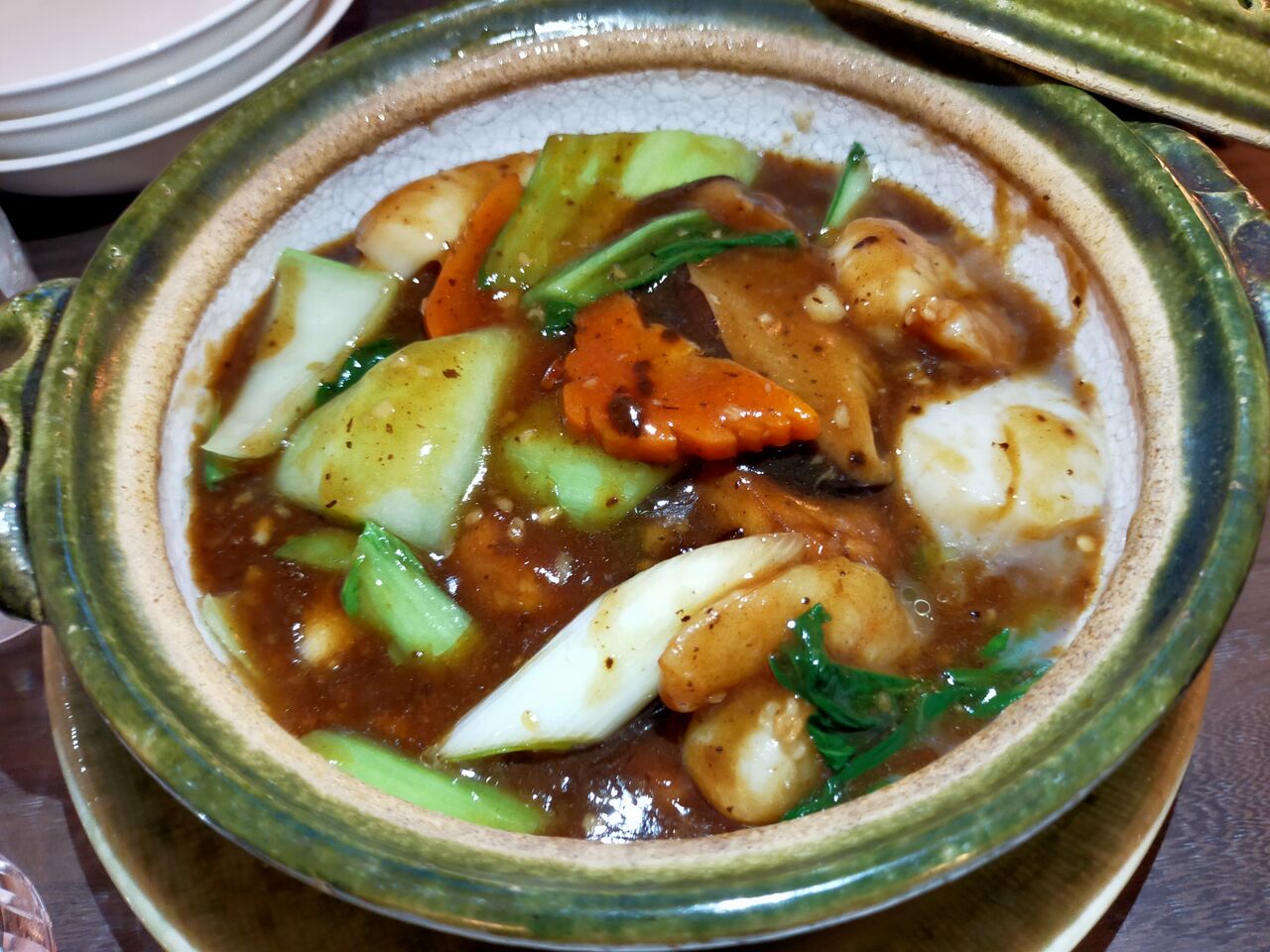 こちらは季節の中華メニューから 海鮮の土鍋味噌煮込み。