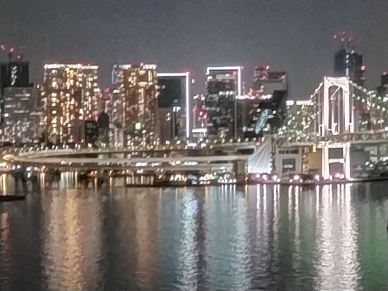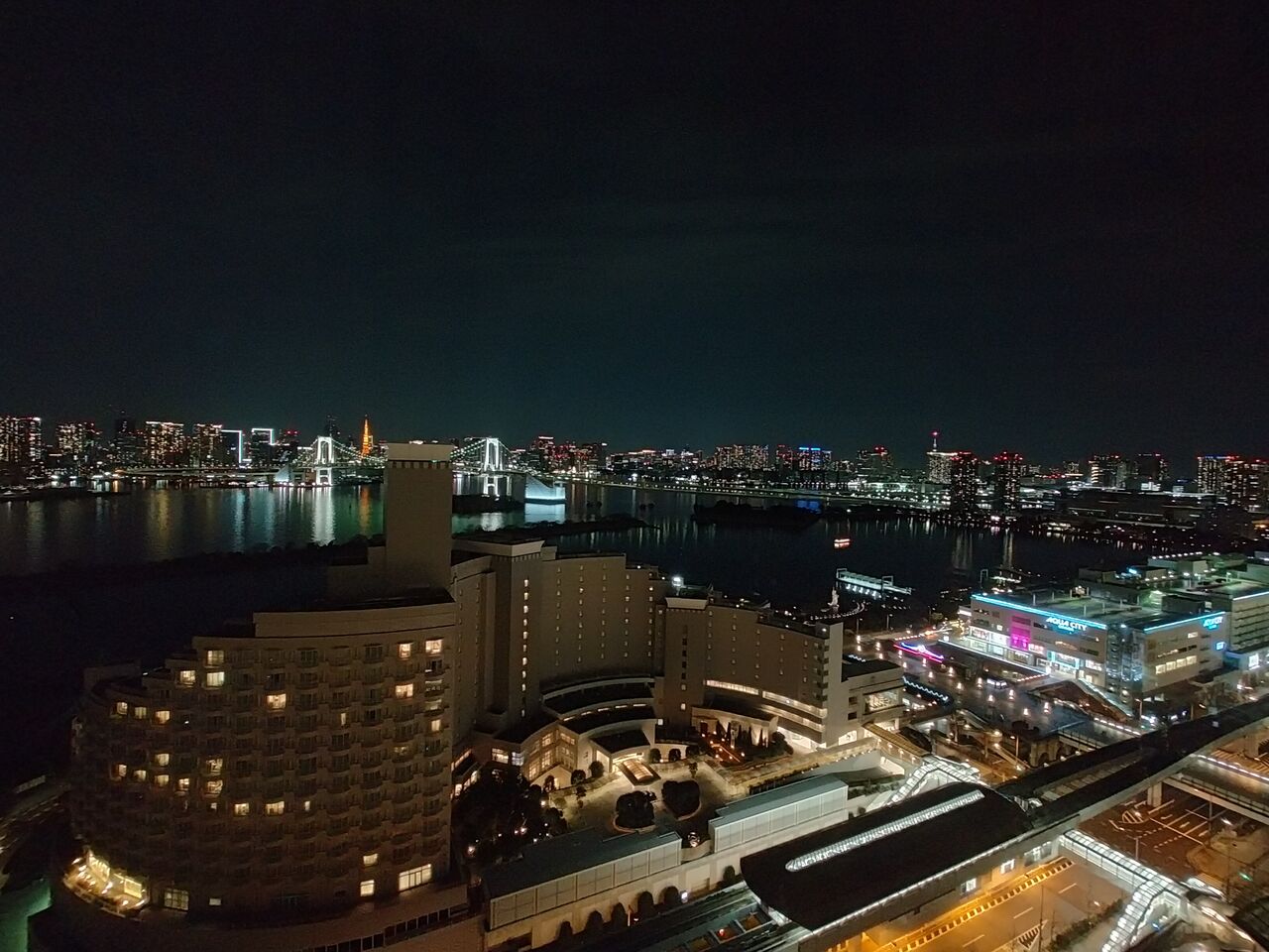 ガラス超し&デジカメズームで画質が粗くなってしまっているので、写真ではそれほどではありませんが、肉眼ではかなりキレイな夜景です。