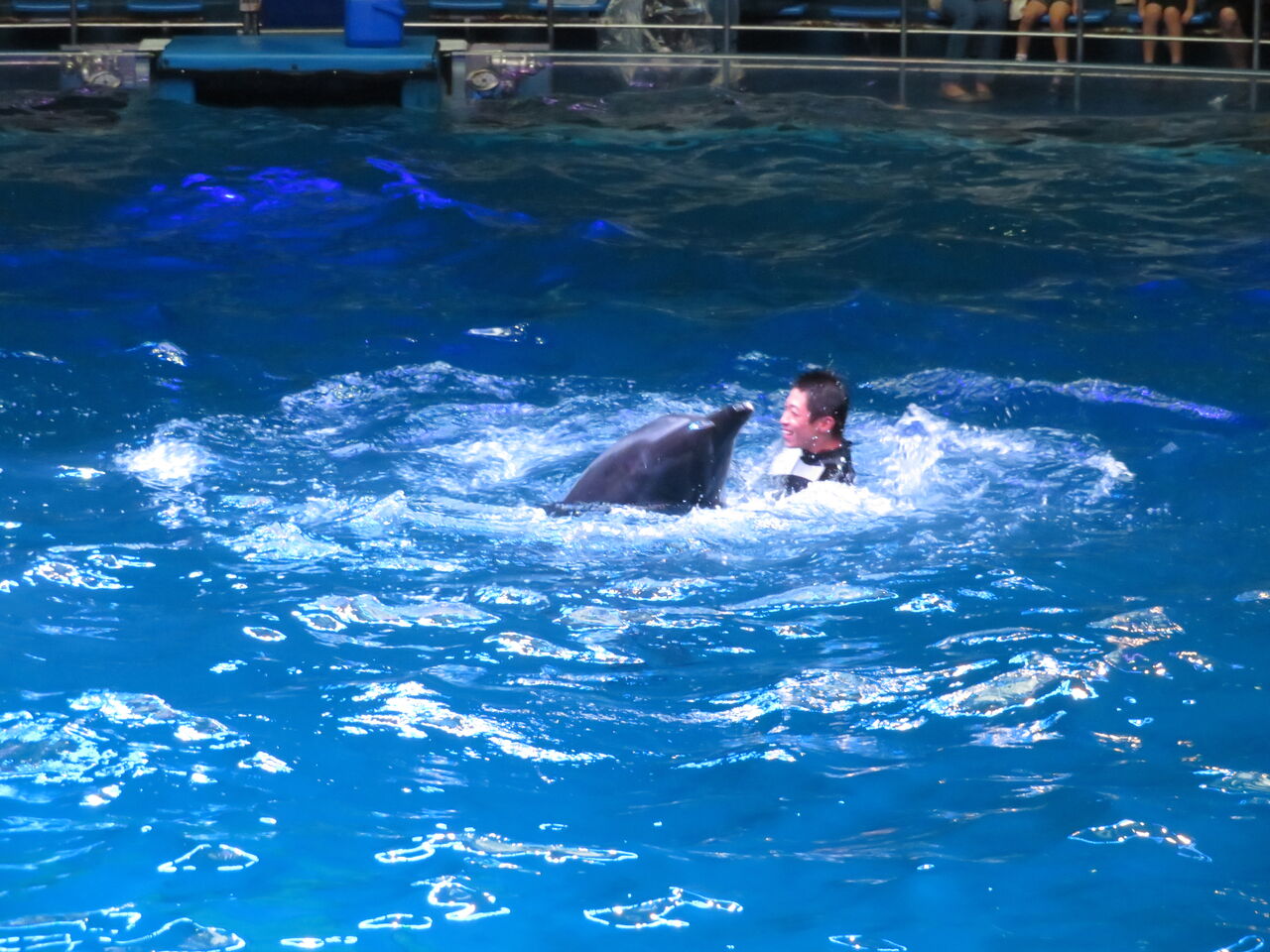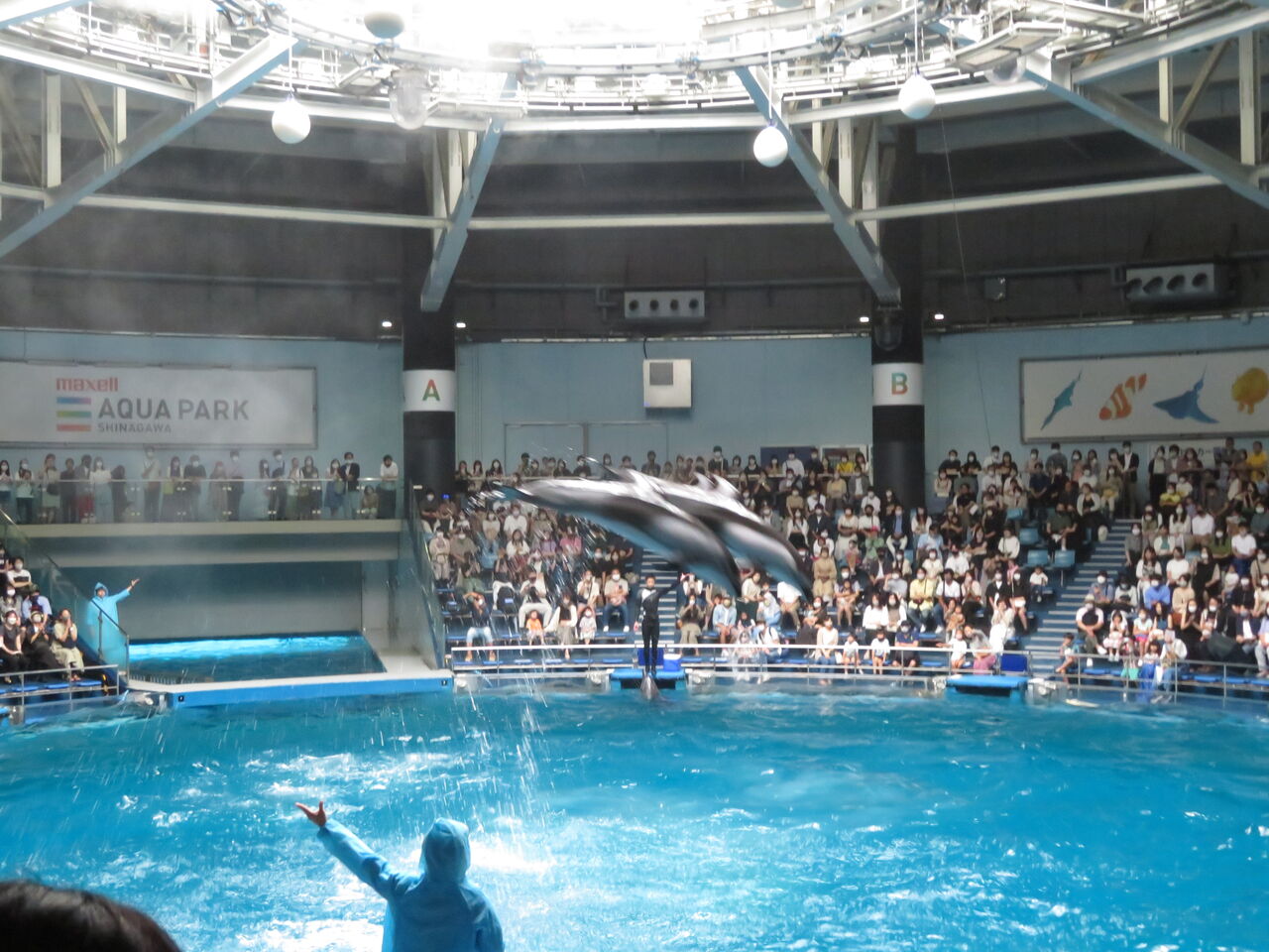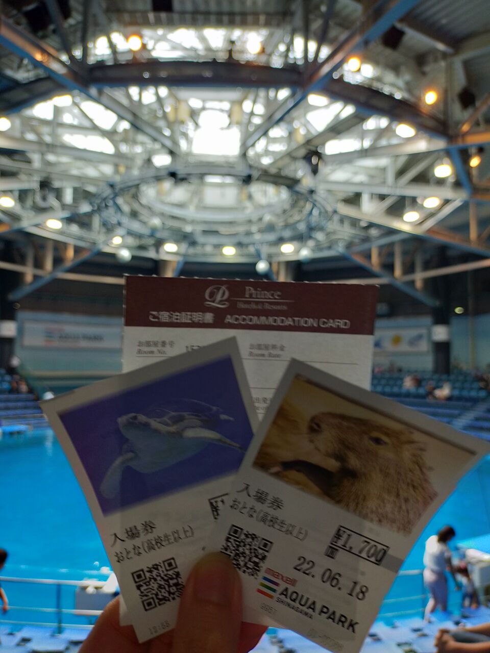 2022年09月02日 ドルフィンパフォーマンス マクセルアクアパーク品川② 都内ホテルのクラブフロアを楽しむ旅その15 都内ホテルのクラブフロアを楽しむ旅 グランドプリンスホテル高輪 マクセル アクアパーク 続きです イルカショー「ドルフィンパフォーマンス」を見るために席に。宿泊証明書を使って、入場料は1,700円/大人。チケットの写真はカピバラさんとうみがめさん。円形の会場で、どの位置からもショーはよく見えます。ドルフィンパフォーマンスにはお昼のショーデイバージョンと夜のナイトバージョンがありますが、今回はデイバージョン。この先がイルカプールになっているようで、こちらからイルカがやってきます。始まるころには席はほぼ満席。音楽とライトで演出された楽しいパフォーマンス。ドルフィンパフォーマンスの後、混雑を避けて空いている場所だけちょっと回る。カピバラさん 可愛かった(笑)ホテルに戻ります。 楽天トラベルからの予約は0と5のつく日がお得。楽天ユーザーなら絶対登録したほうがお得ランキング参加してみました。良かったらポチお願いします。にほんブログ村" 「旅行記」カテゴリの最新記事 < 前の記事次の記事 > コメント コメントフォーム 名前 コメント 記事の評価 リセット リセット 顔 星 情報を記憶 コメントを投稿する