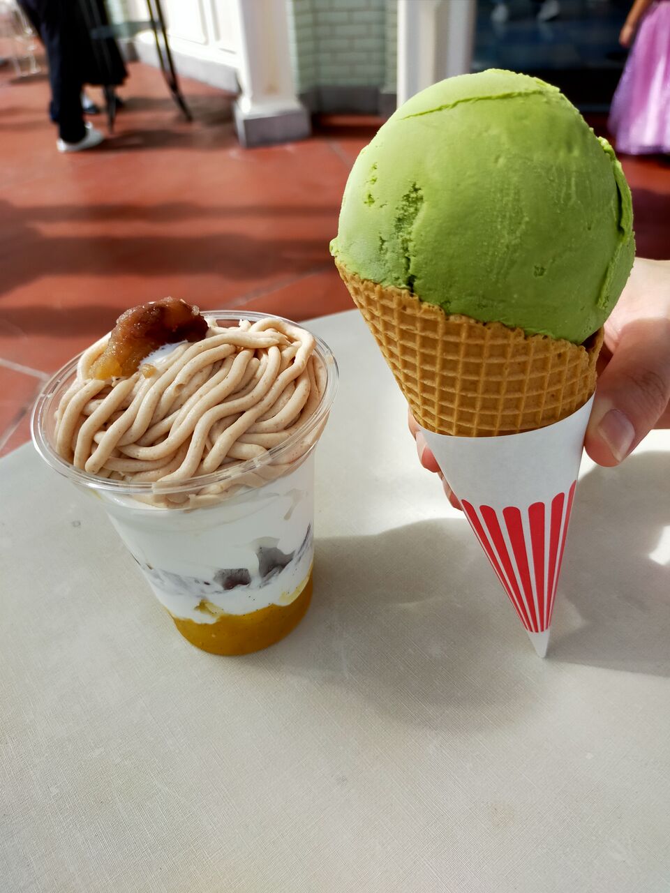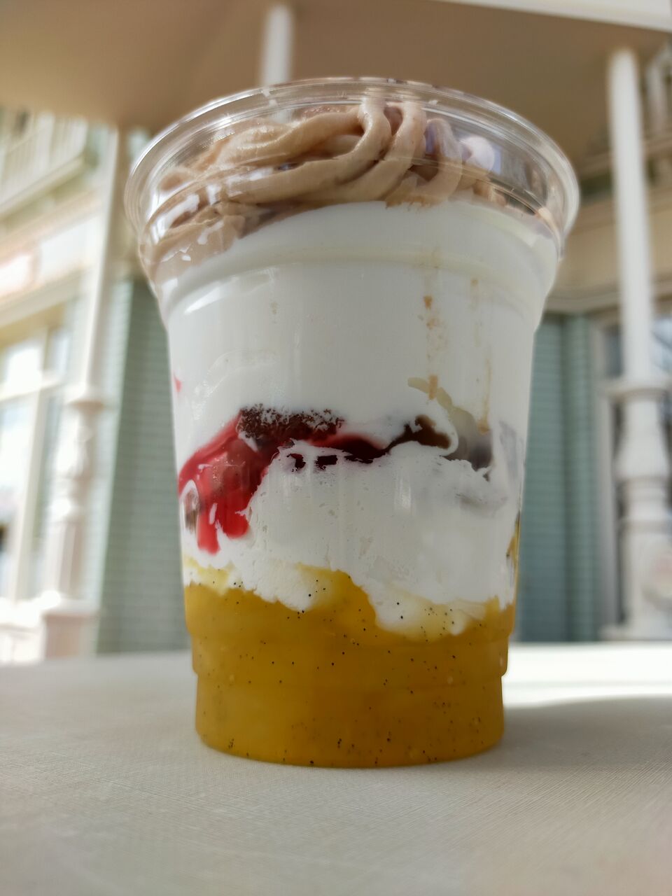 スペシャルサンデーは上段がマロン・ソフトクリームを挟んで下がオレンジと層になっていて、最後はさっぱり味で〆られるのが秀逸。