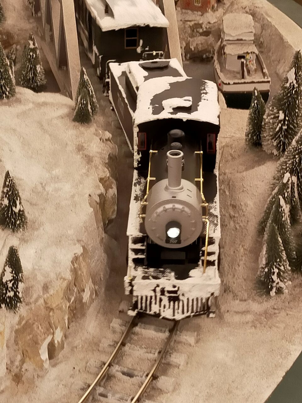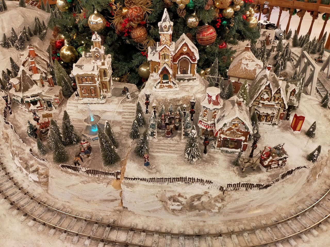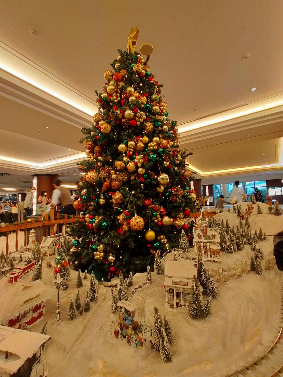 フロント階メインのツリーは、周りに機関車が走っています。