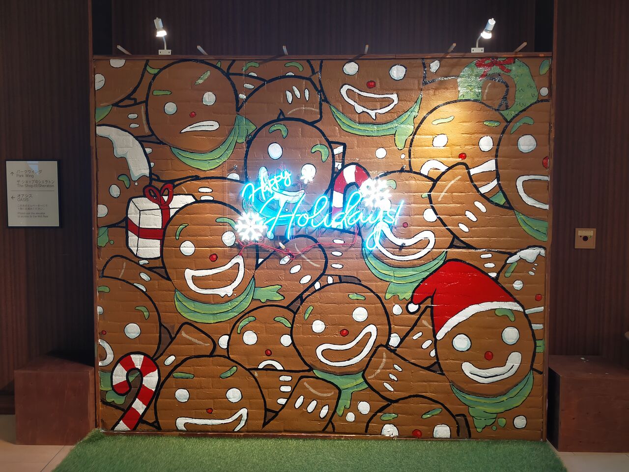 入口には光るスノーマンを従えた大きなクリスマスリース。