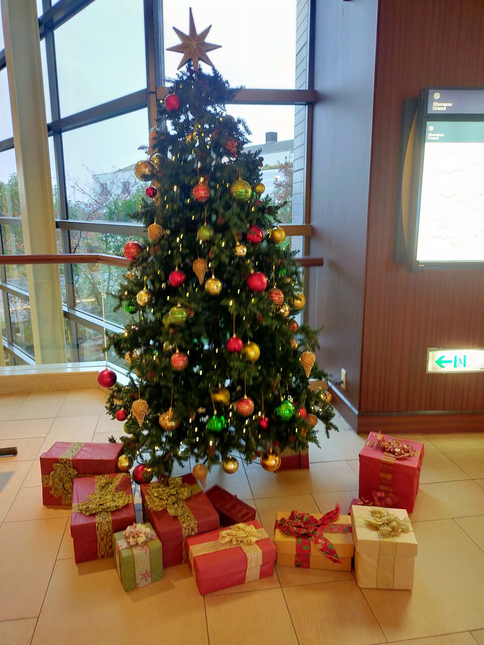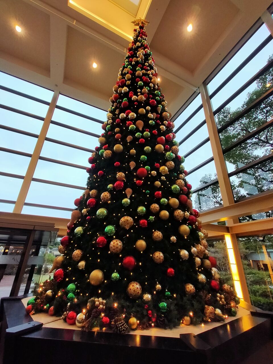 グランカフェの入り口には大きなクリスマスツリー。