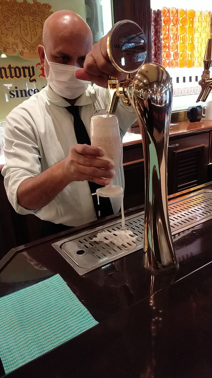 注ぎたてを味わってほしいということで、バーカウンターまで行ってオーダー。