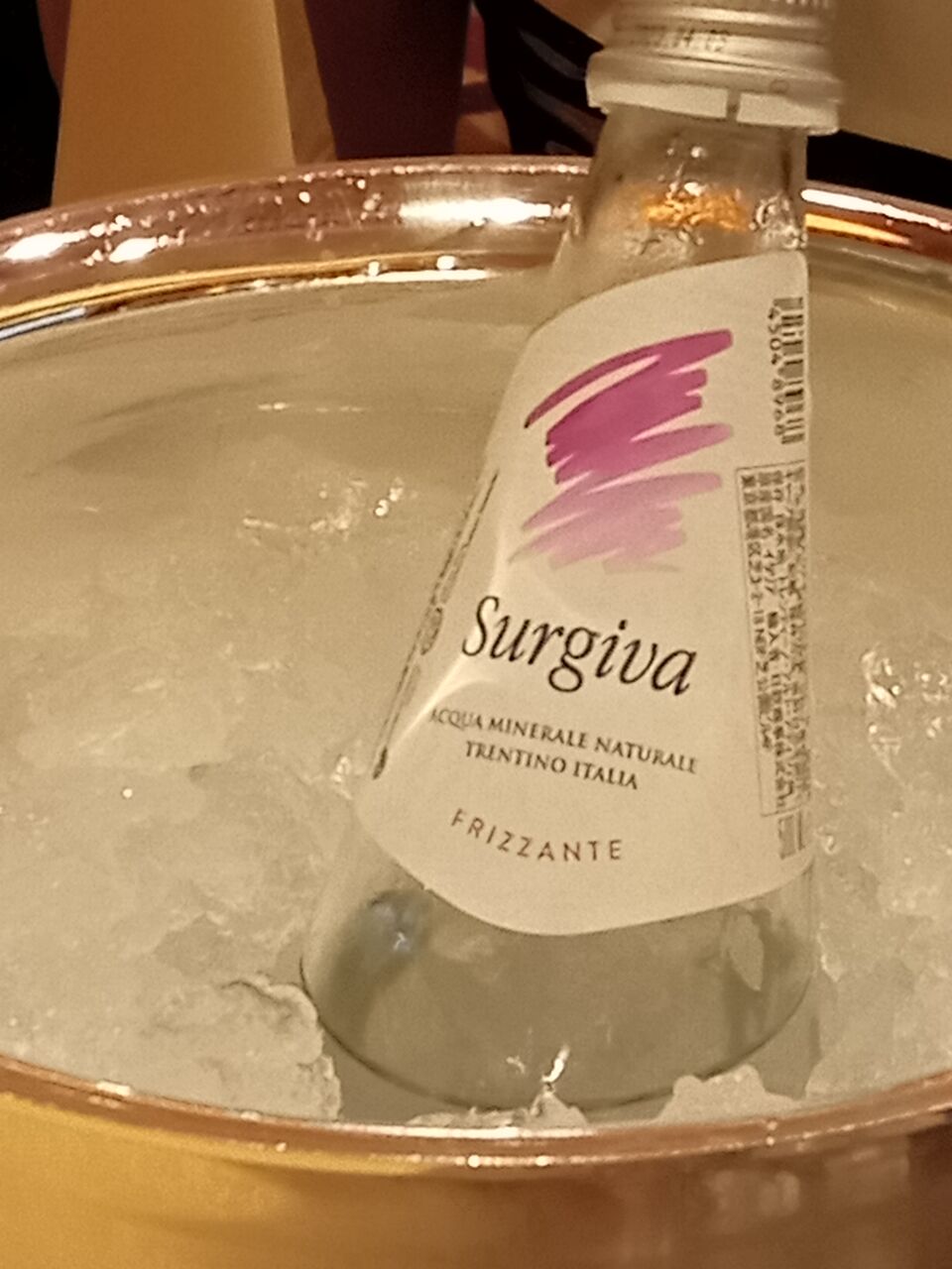 炭酸水を注文すると、アイスバスケットに入って提供されます