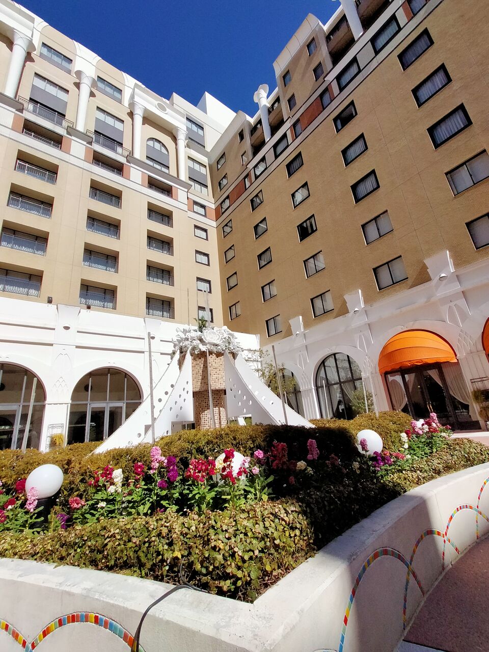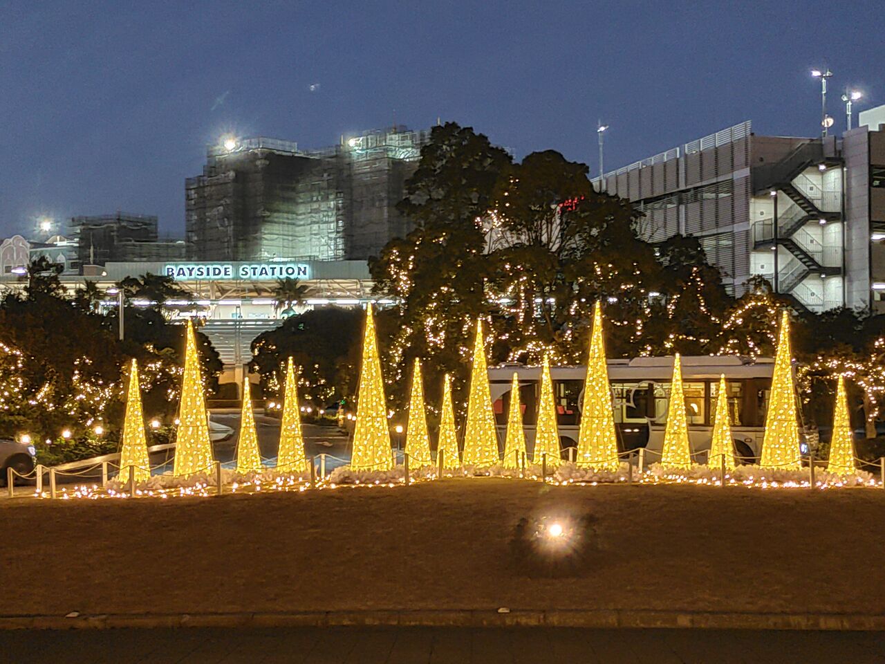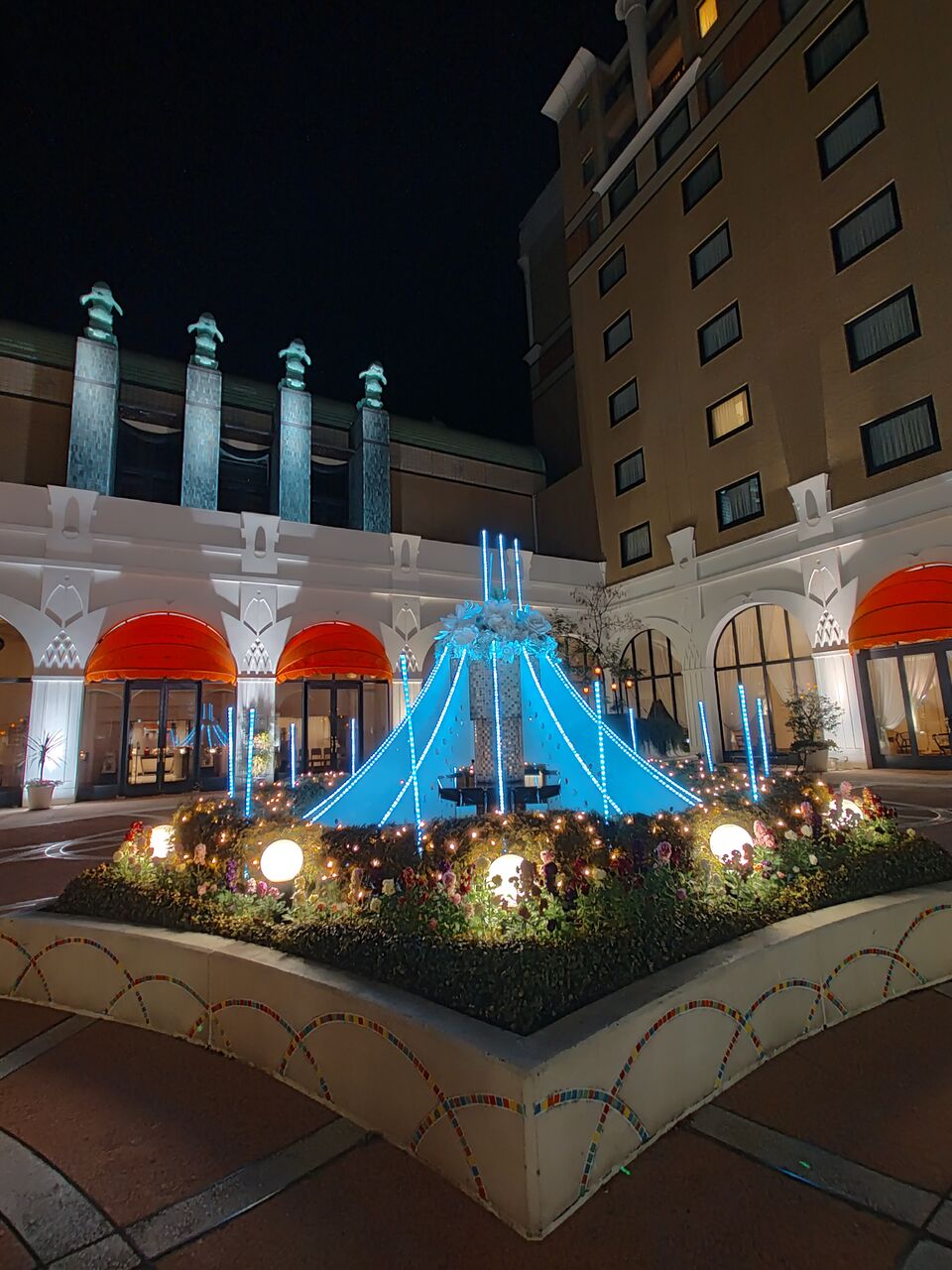 先ほどのワインカクテルで酔った夫がベンチで休憩したいというので、この位置で遠目に鑑賞しました。