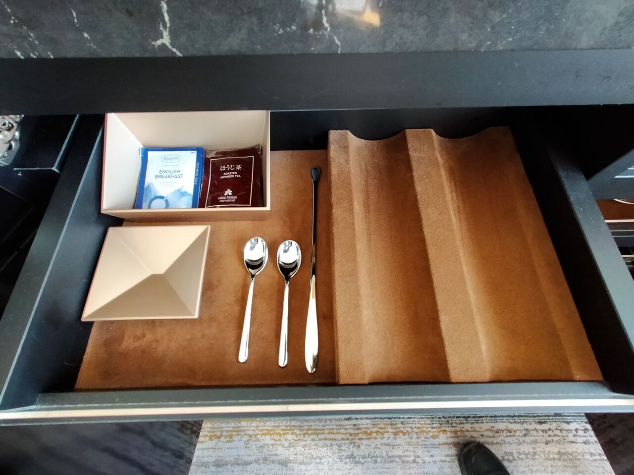 この時は気がつかなったので写真を撮れていないんですが、緑茶はティーバックではく茶葉でした。