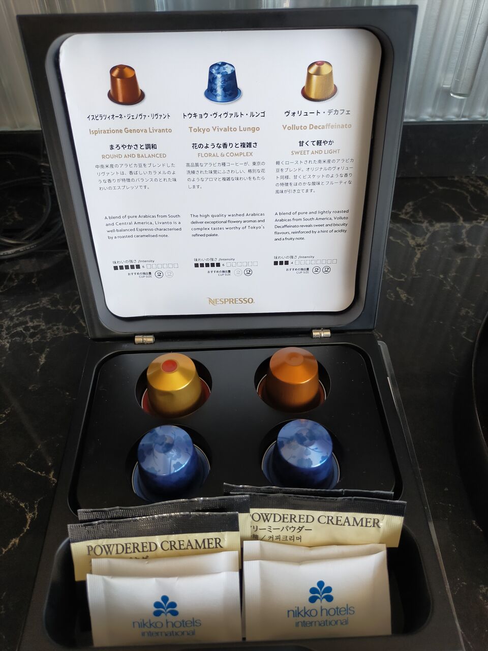 カプセルは三種類。デカフェがあるのは「良いお部屋」感がある。