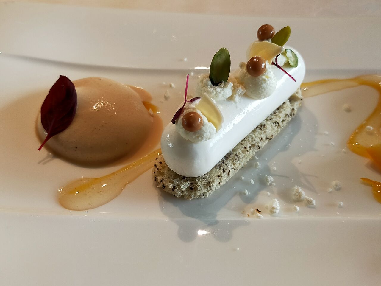 <2023年1月10日(火)~4月9日(日)>■ポークのパテ 黒胡椒風味のクランブル 生ハムとアンディーヴのインサラータ■彩り野菜とツブ貝のパスタ カラスミ■本日の魚のインパデッラ 海老とムール貝 サフラン香るブロテッドまたは鴨むね肉のアッロースト キノコのトリフォラーティ 洋梨と無花果のマルメラータ■ティラミス ブルーベリーとヨーグルトのジェラート■コーヒー または 紅茶