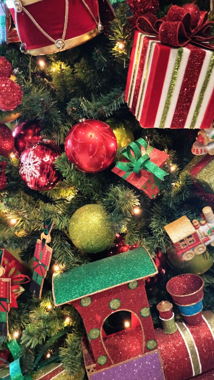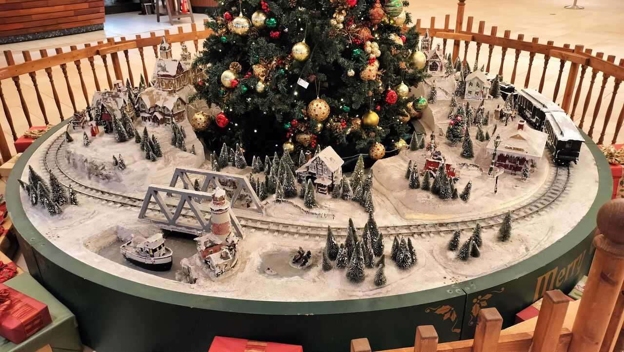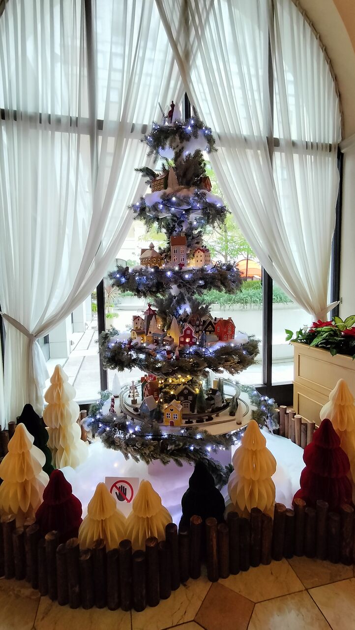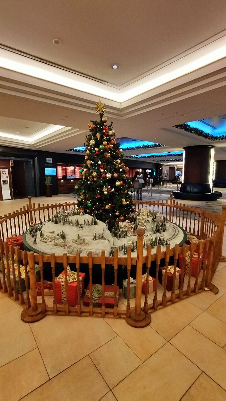 シェラトンといえば、ロビーにある周りに汽車が走るクリスマスツリー