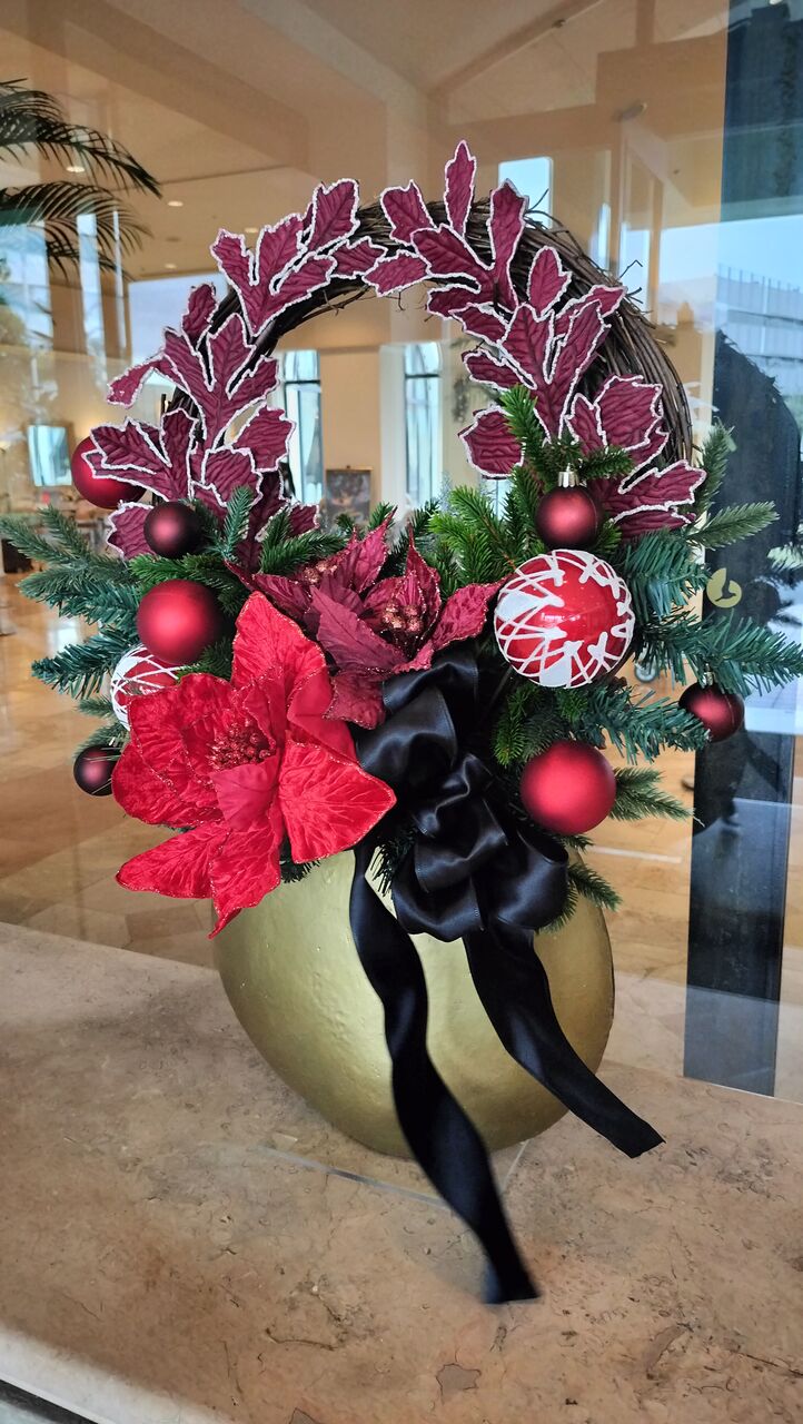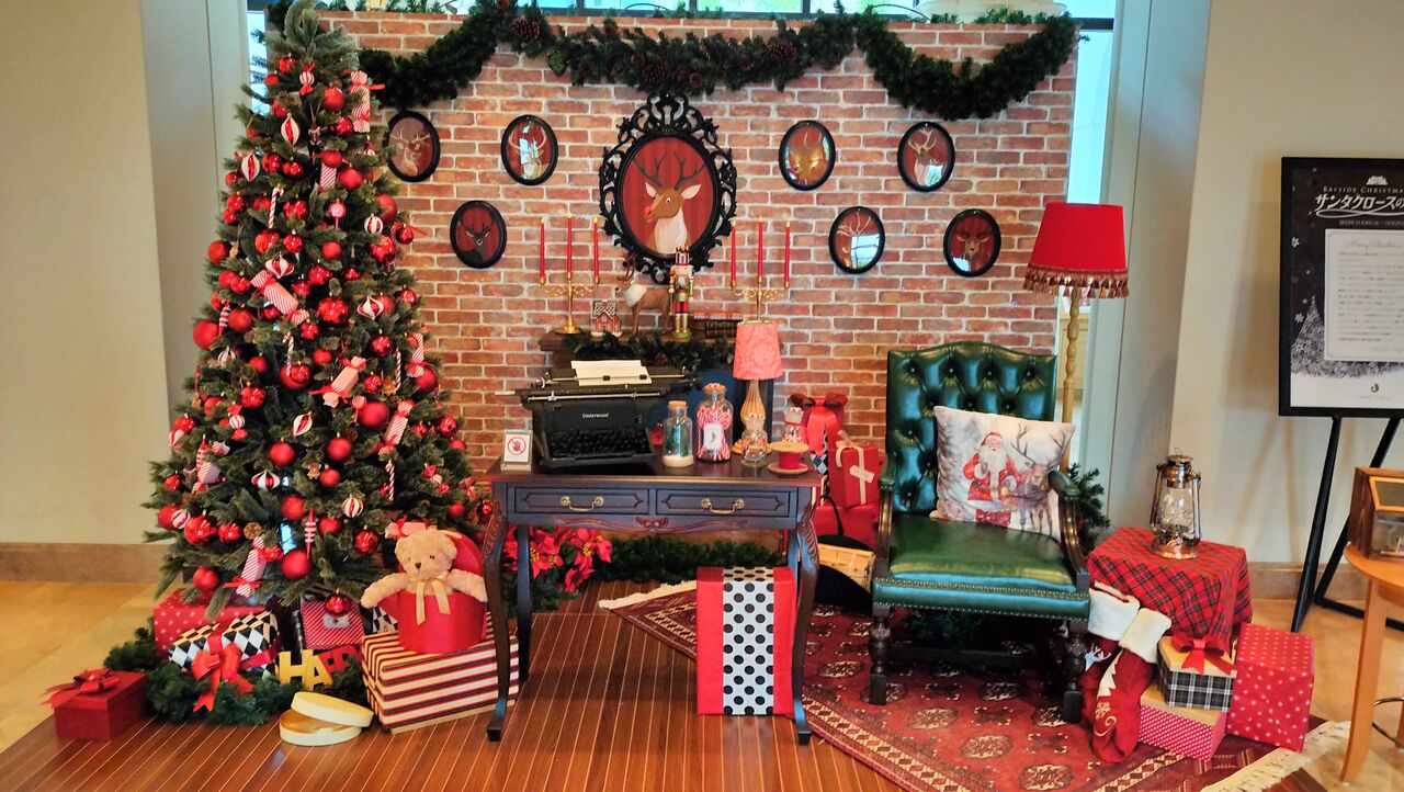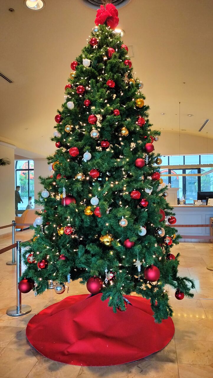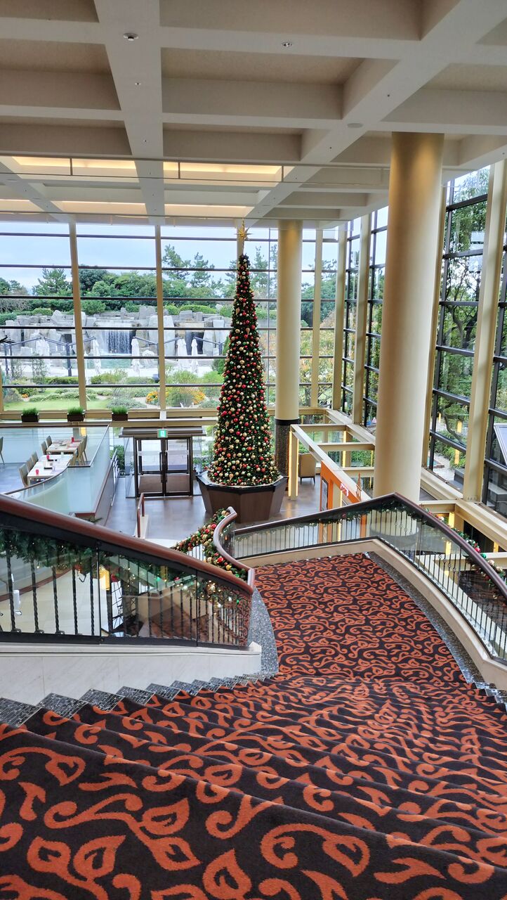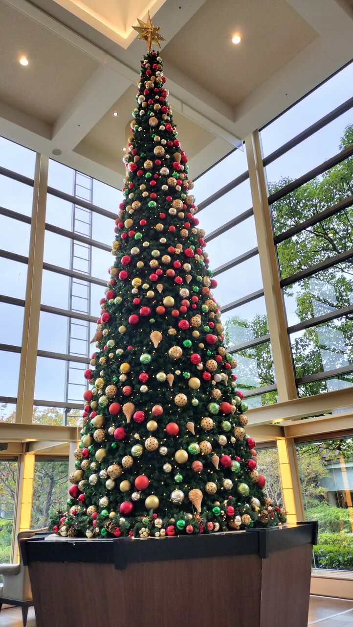 普段は季節の花が飾られているレセプション前に大きなツリー