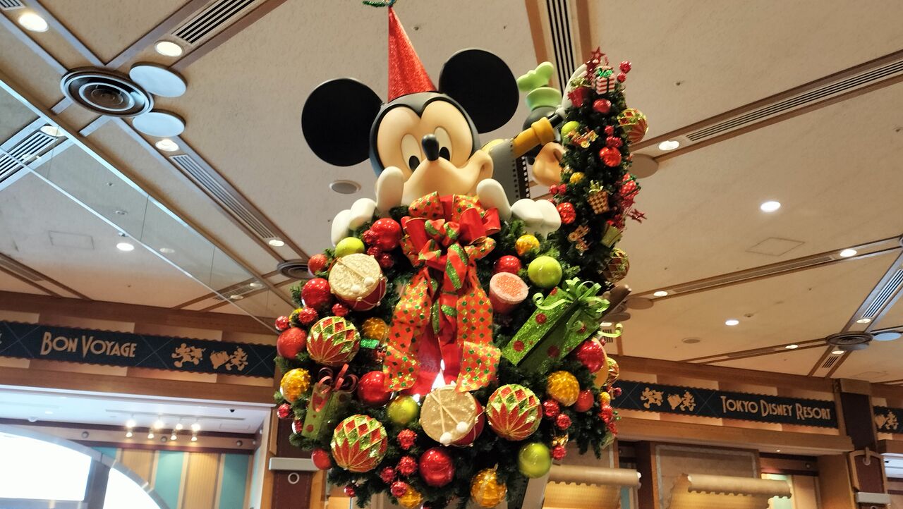 天井のアーチが素敵な回廊にクリスマスの装飾が素敵です。
