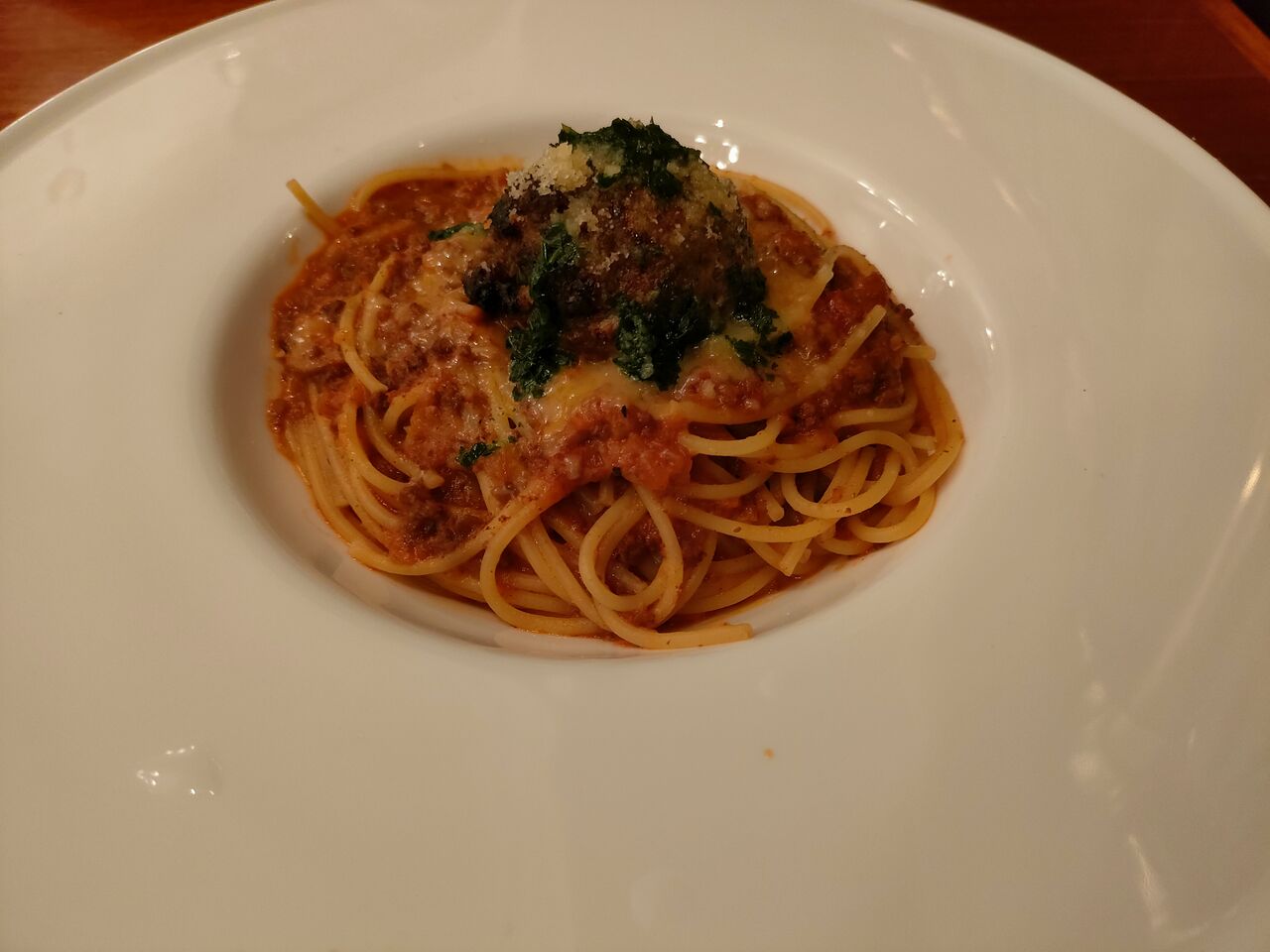スパゲッティ・ボロネーゼ、ビーフポルペッティ添え(プラス¥500)