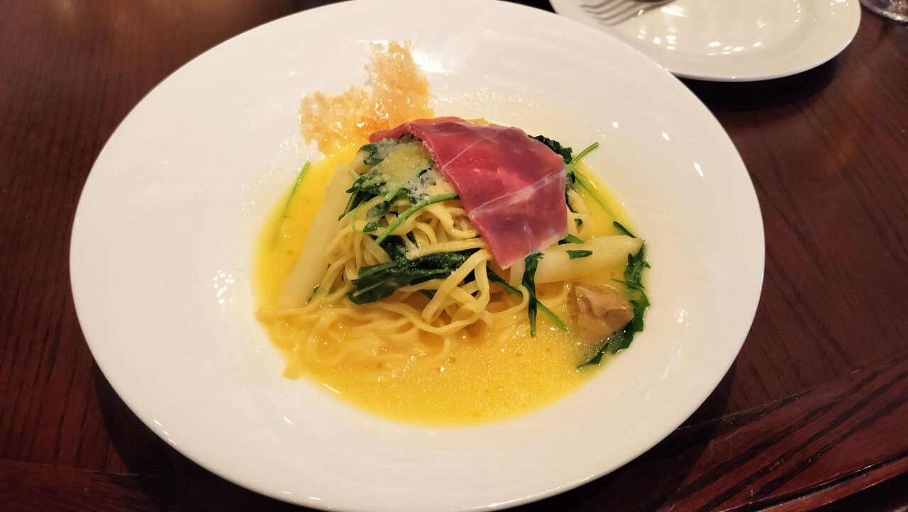 細めの平打ちパスタタリオーニにサラリとした蕪のサフランソースがよく合います。