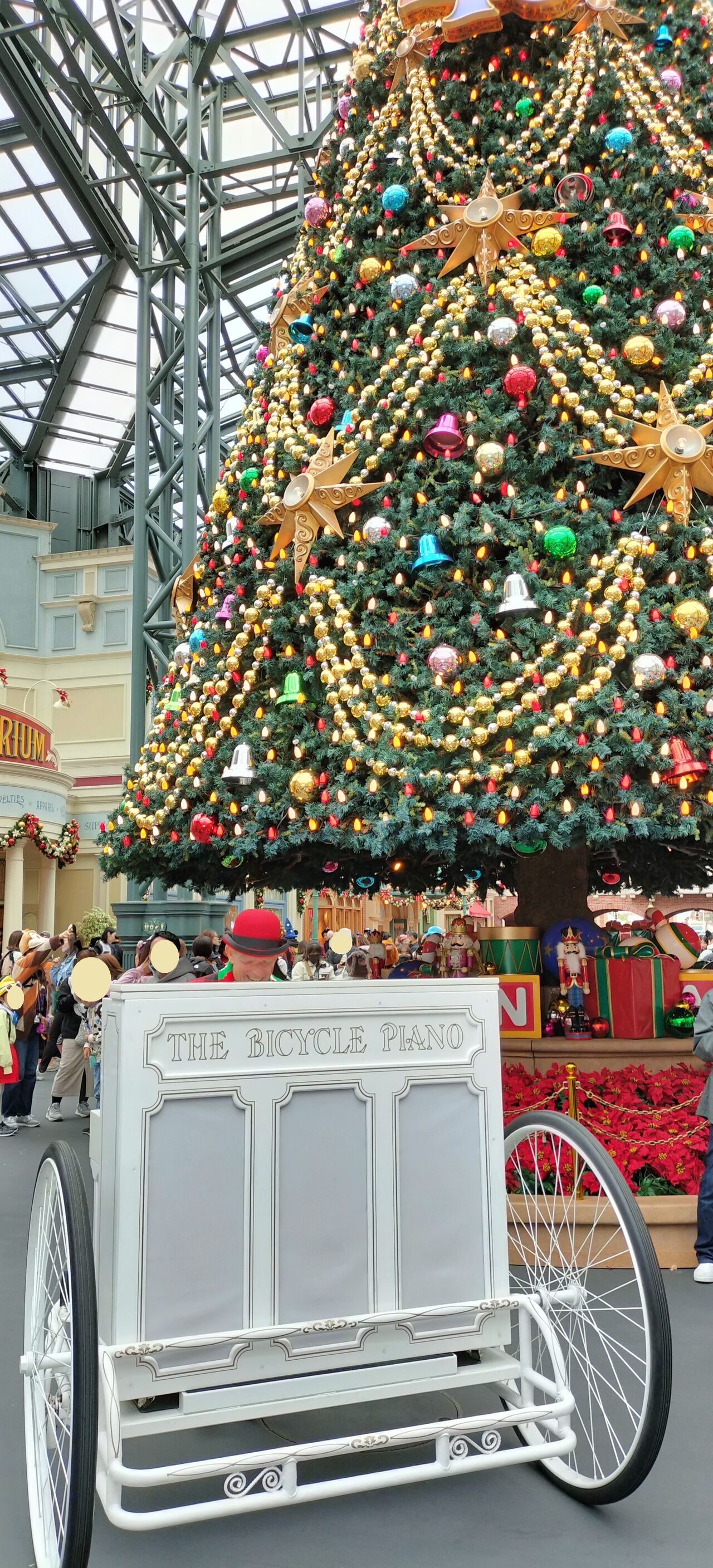 ワールドバザール中央にある、ディズニークリスマス2023 40周年のクリスマスツリー。