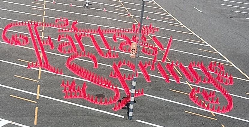 ディズニーシー側の駐車場にはファンタジースプリングスのコーンアート。