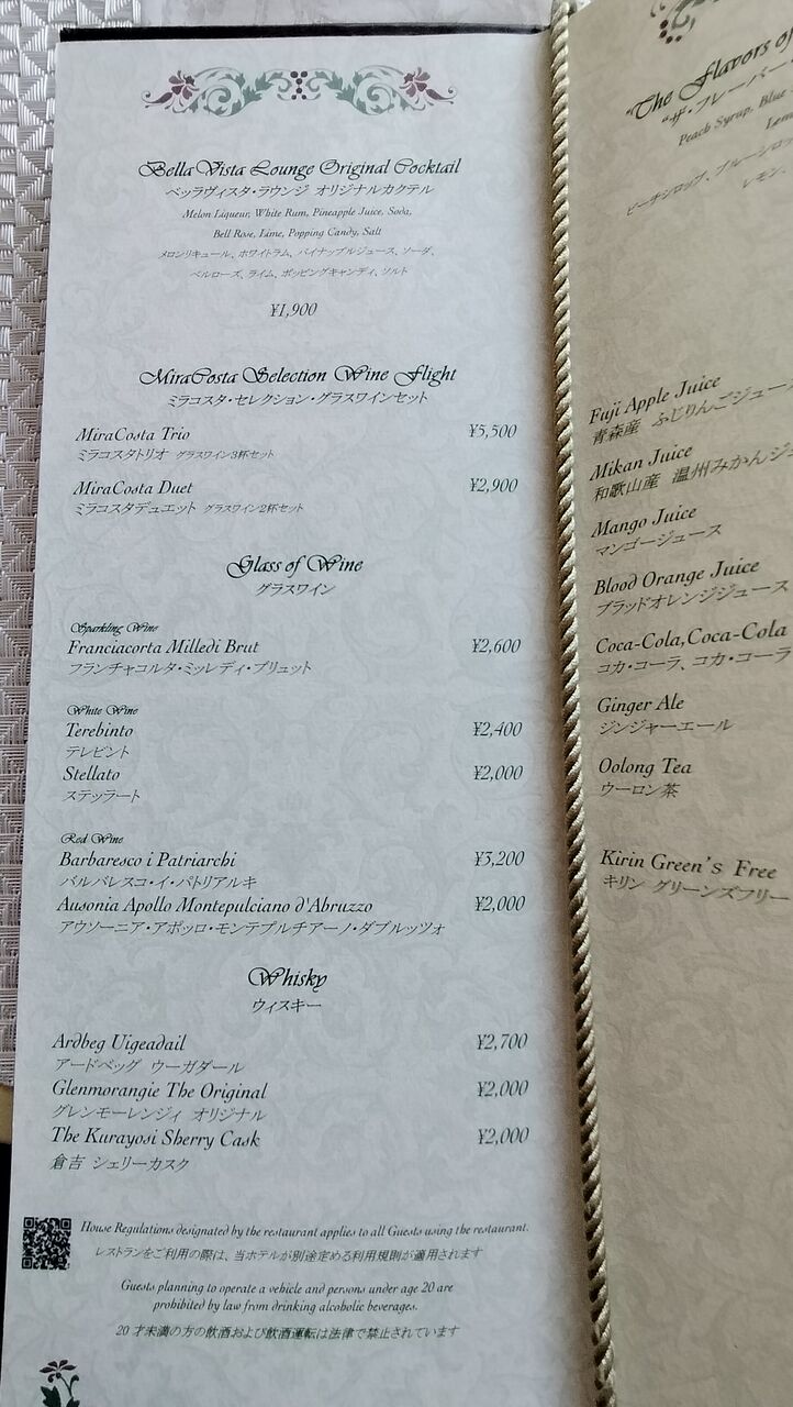 ノンアルコールの“ザ・フレーバー・オブ・ミラコスタ”スペシャルドリンクやオリジナルカクテル、グラスワインもありますが、ベッラヴィスタラウンジでワインといえば、