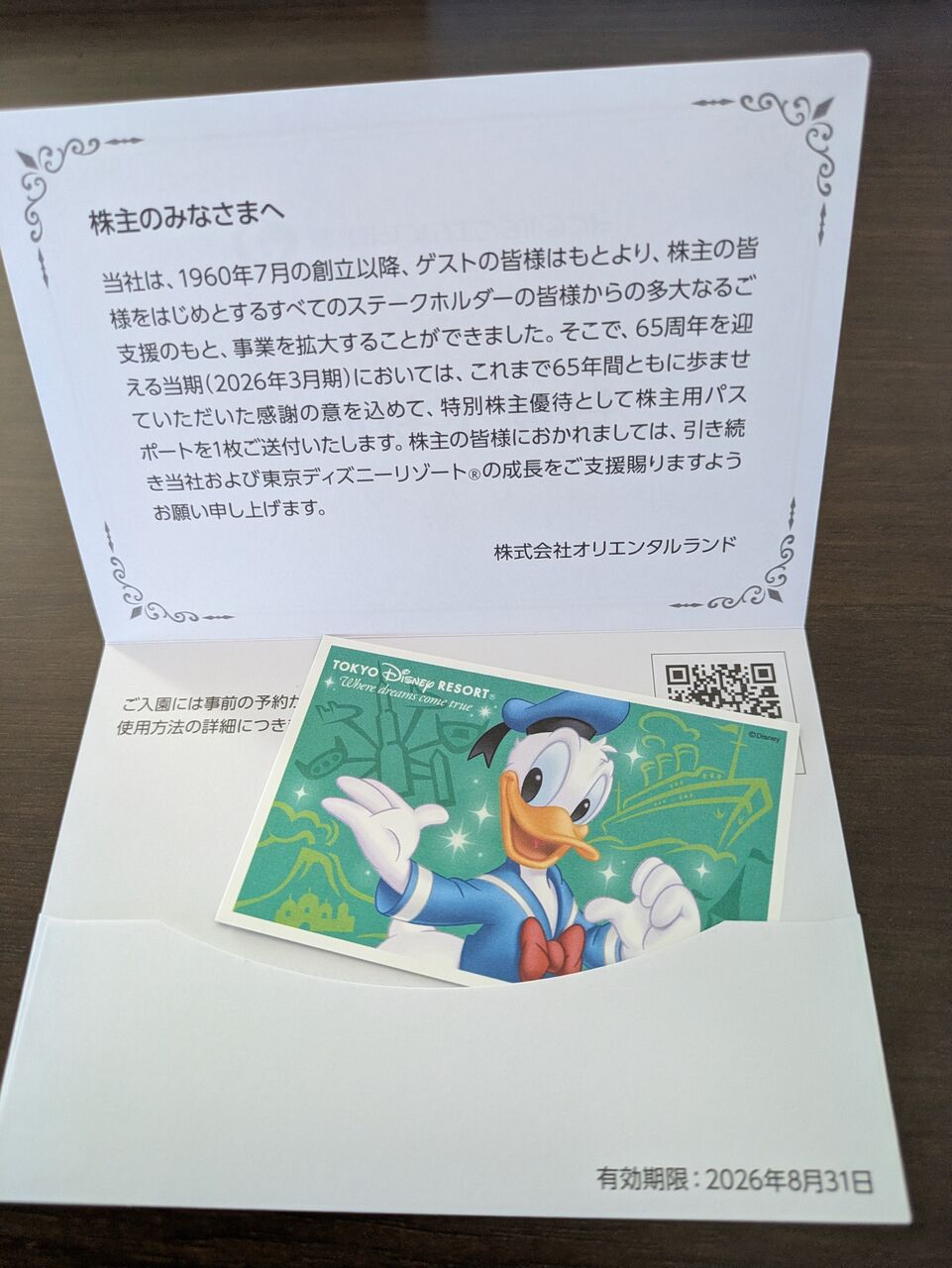 65周年を迎え 特別株主優待としてパスポートが配布されました