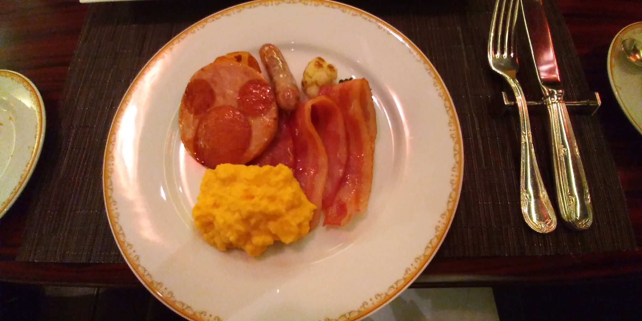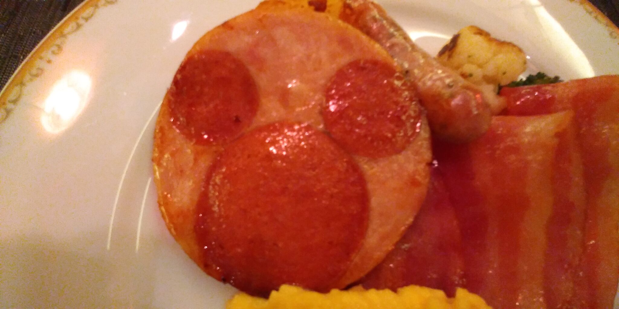 ボロニアソーセージはミッキーフェイス これってシャーウッドガーデンの朝食ブッフェで提供されているものですかね。かわいい上に美味しい。