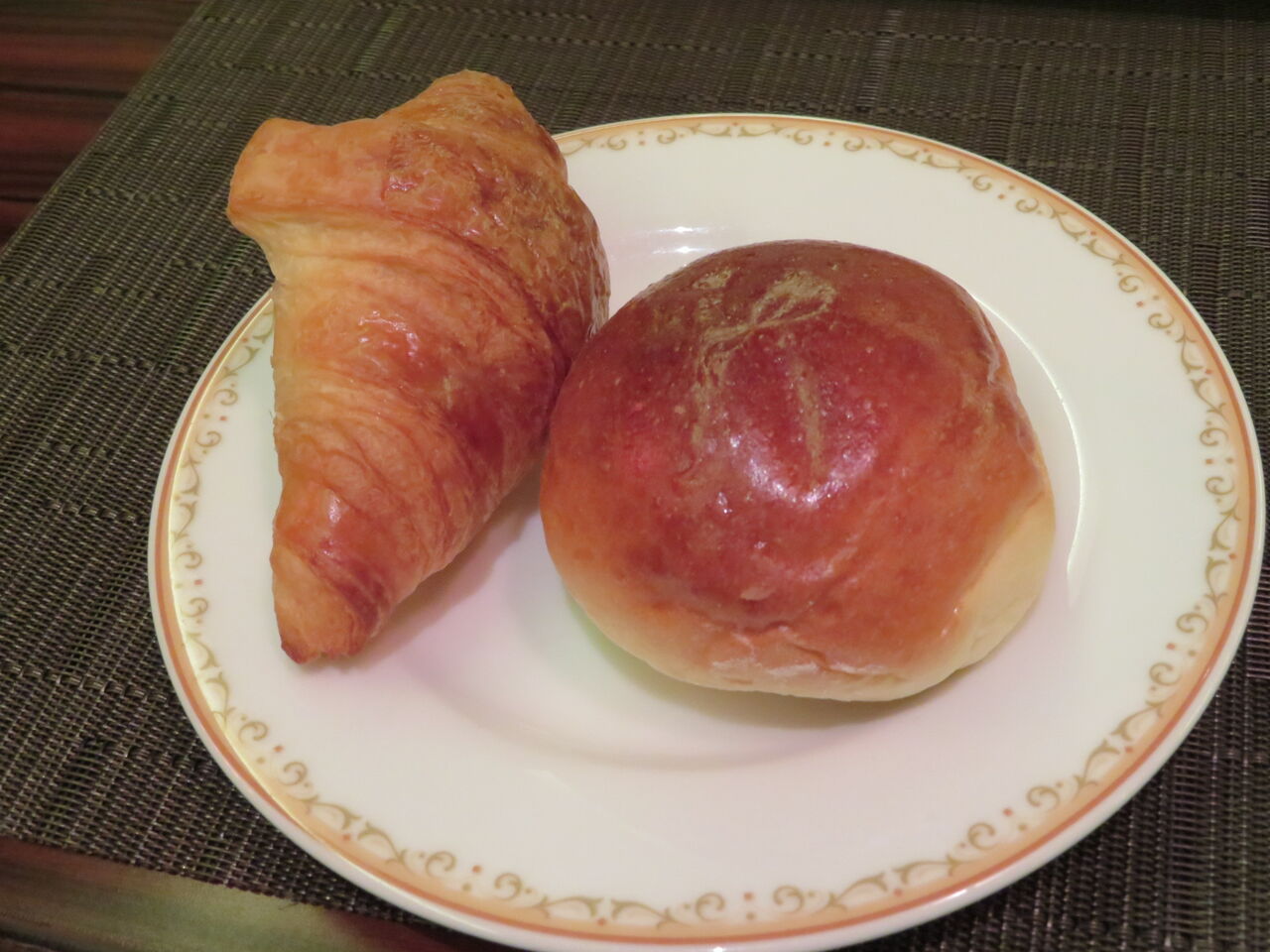 パンは、クロワッサン、ロールパン、メロンパン、クリームデニッシュ。