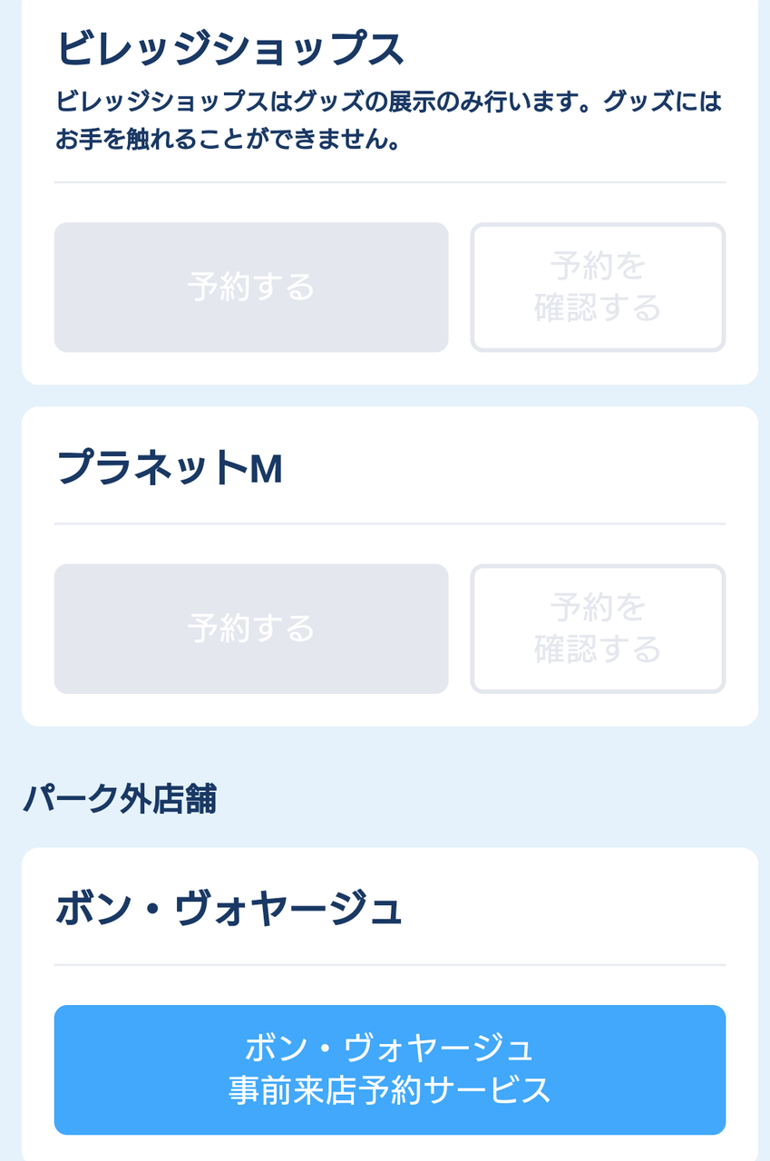 ディズニーランドの新グッズを販売するショップの来店予約はボンヴォヤージュ予約システムと同じところから出来るみたいですね。