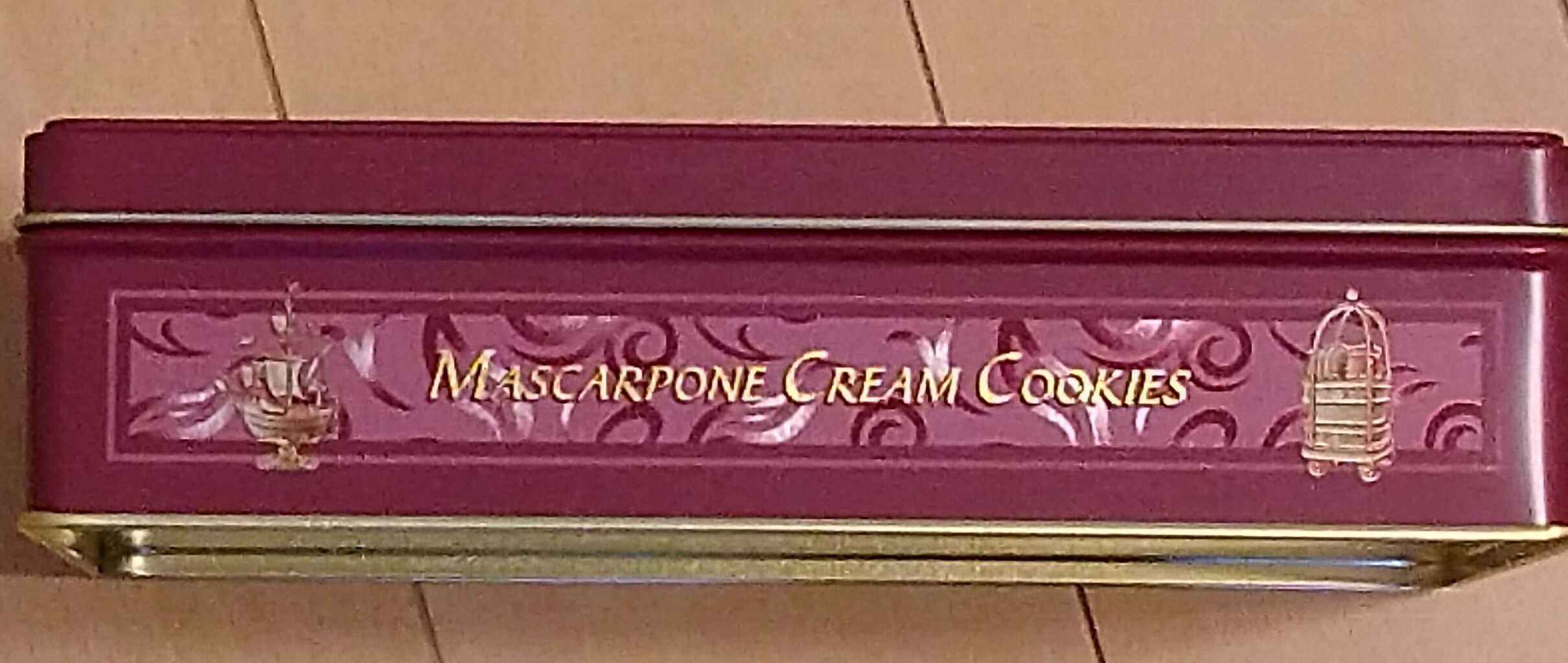 缶の横にはマスカルポーネクリームクッキーの文字