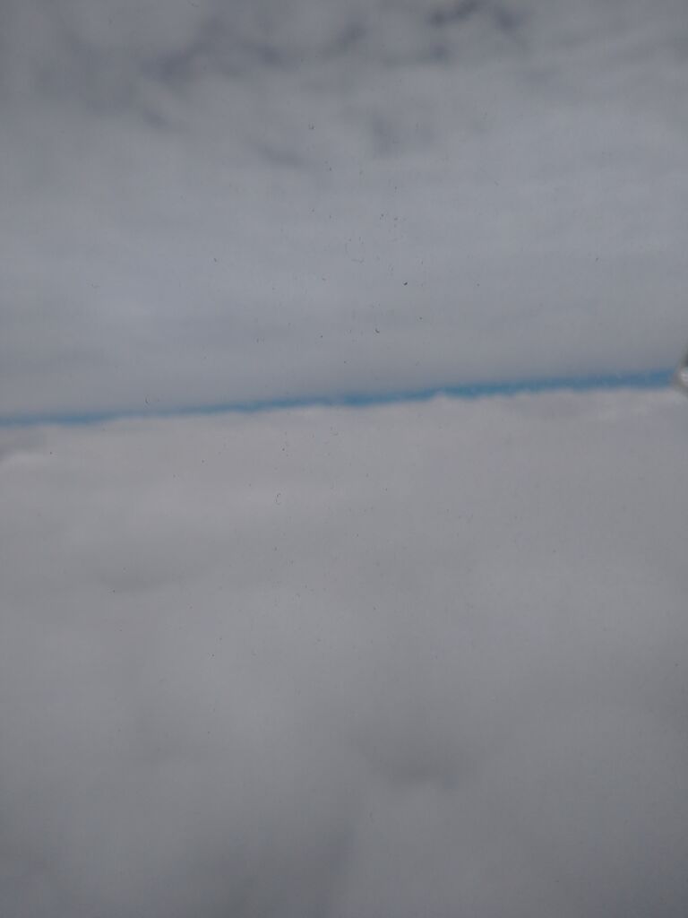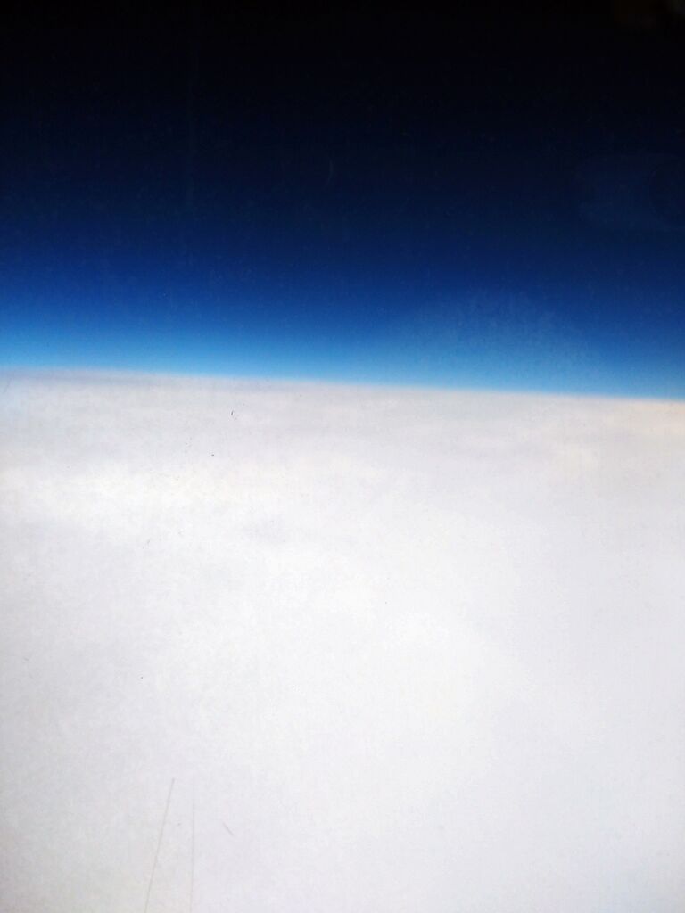 窓越しのせいか、まるで成層圏突入しそうな色の写真が撮れました。