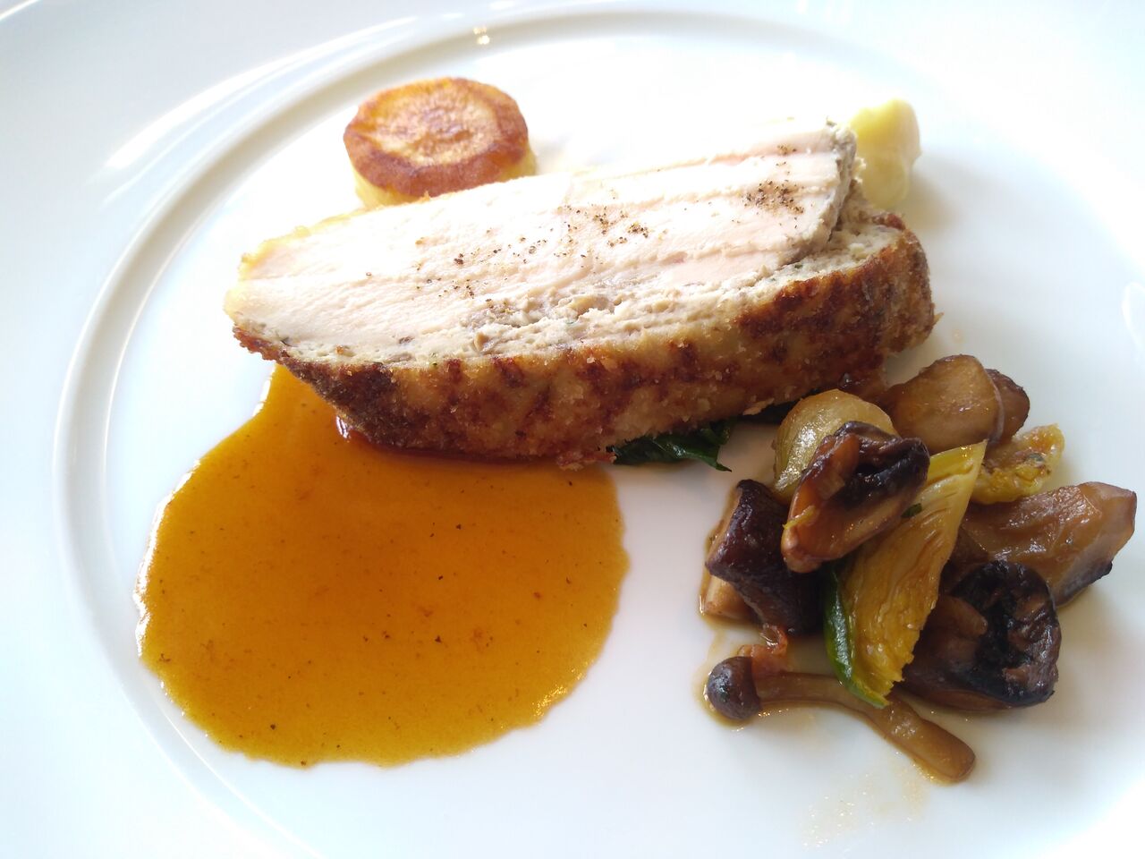 ■鶏むね肉のローストとパースニップ キノコのグランメール風