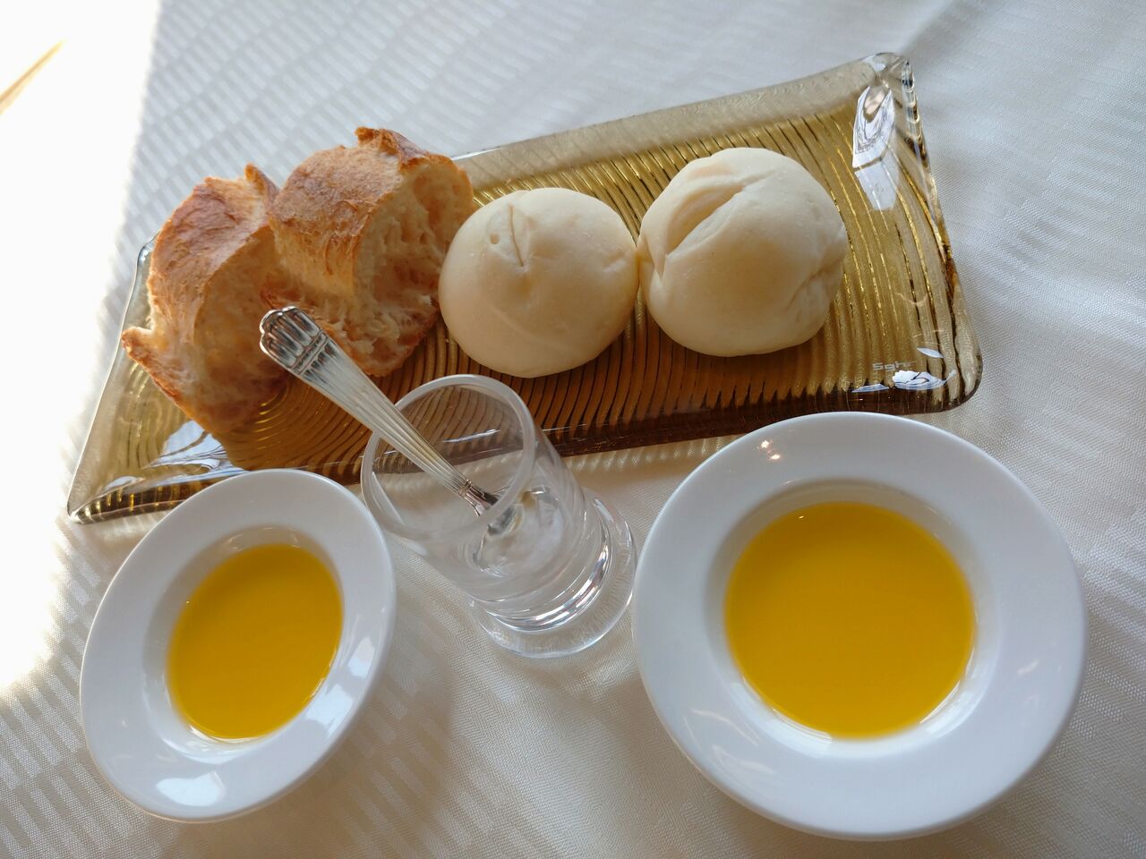 オイルに塩を入れると、味がきりっと引き締まってパンの甘みに良く合うオイルの味になり、とても美味しかったです。
