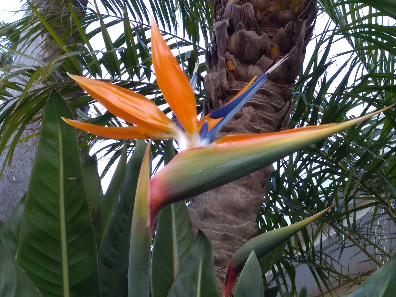 入口の極楽鳥花をアップで。