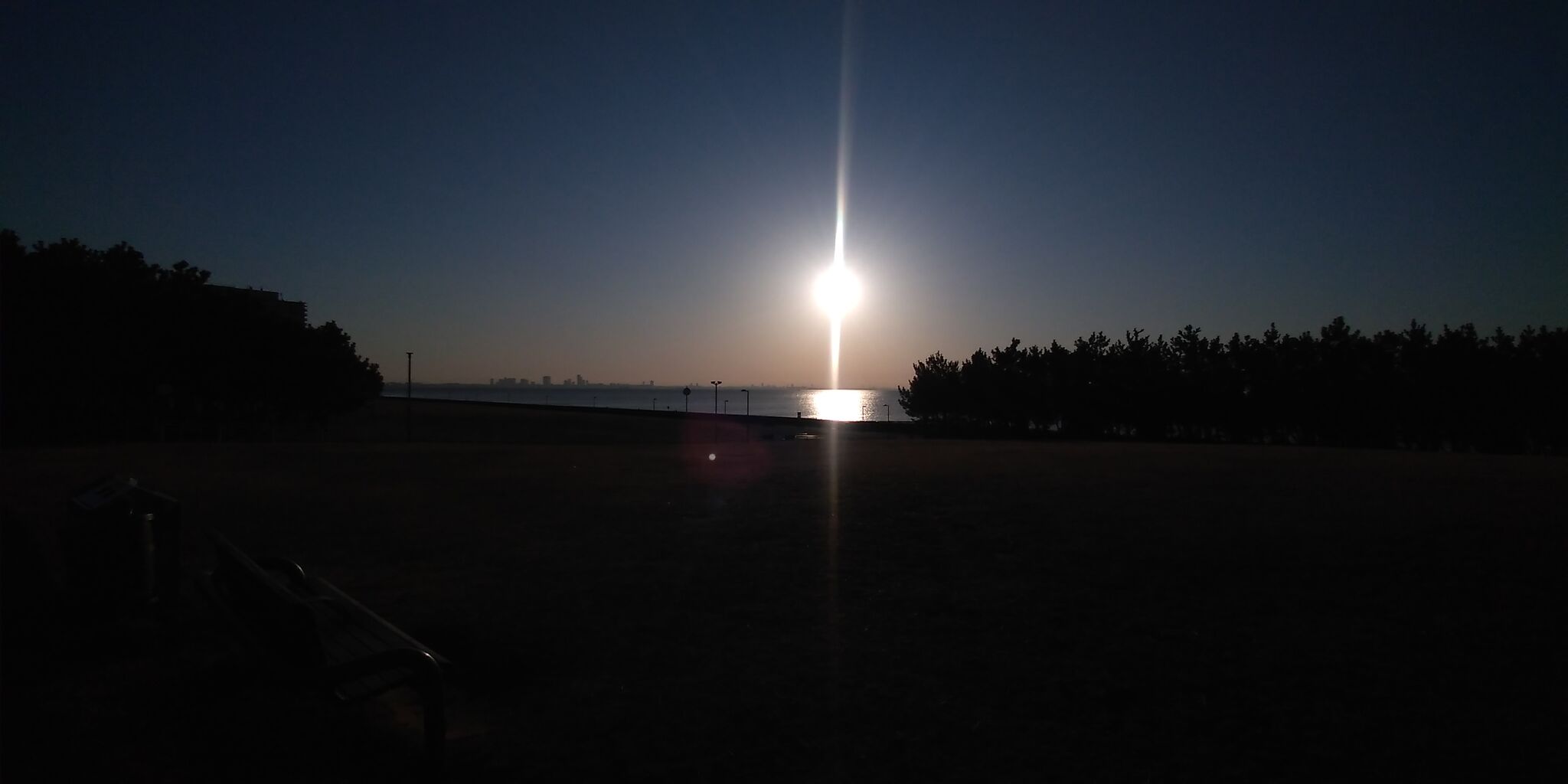 海側に出て朝日 もう高いです。