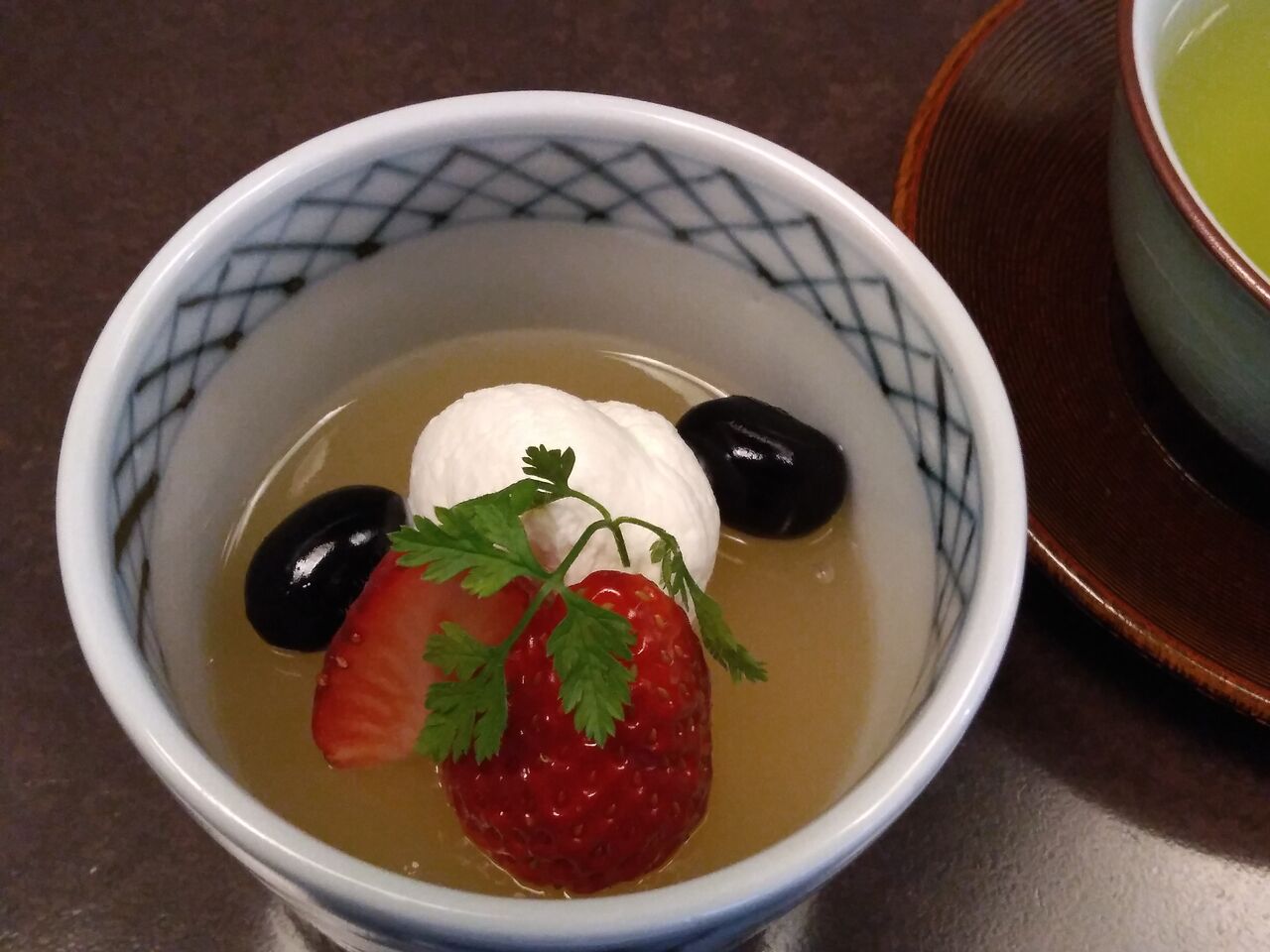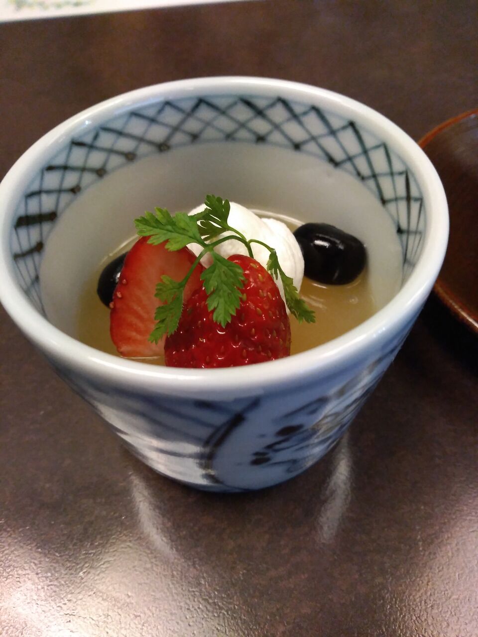 会席のゼリーはオレンジでしたが、こちらはグレープフルーツゼリーでした。