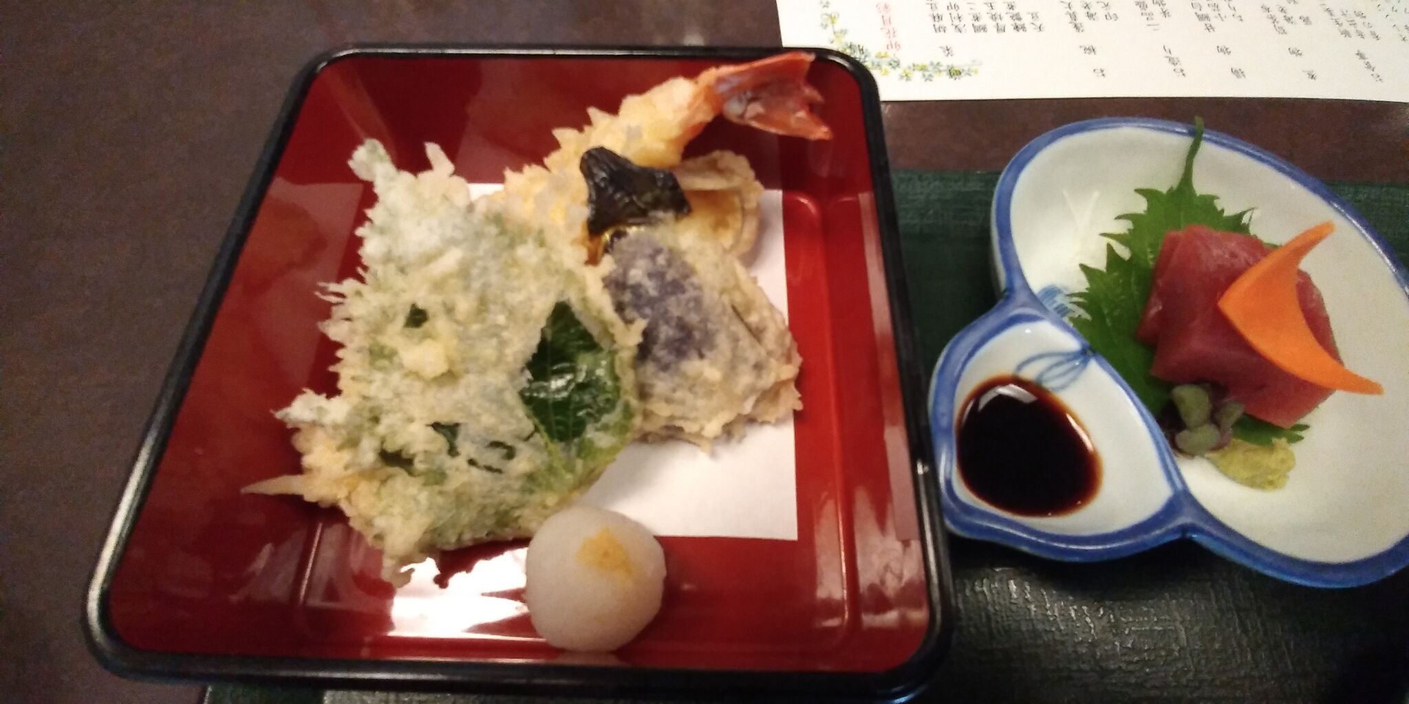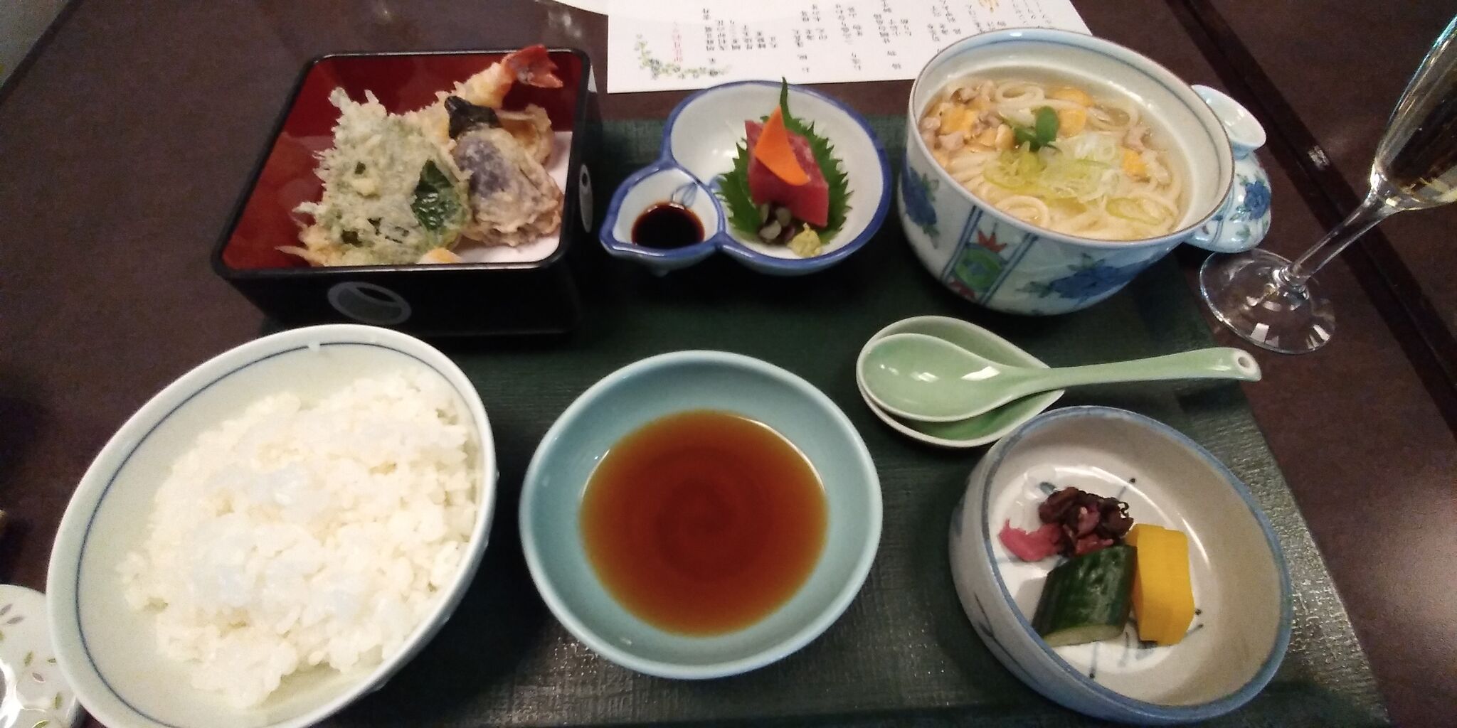 夫が注文した 氷見うどんと天ぷら御膳のご紹介。