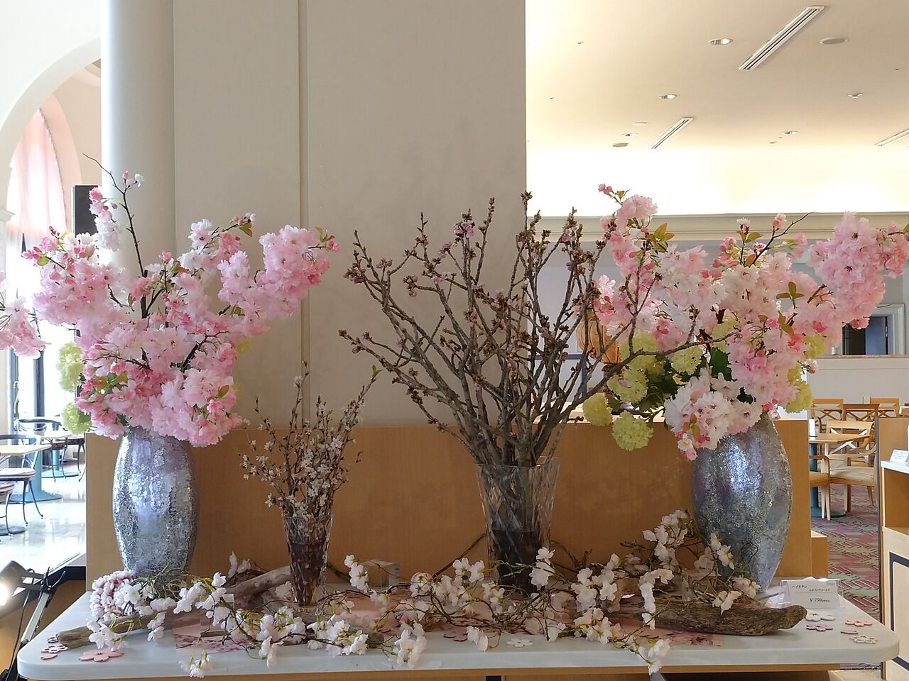 カフェテラスも桜ディスプレイ