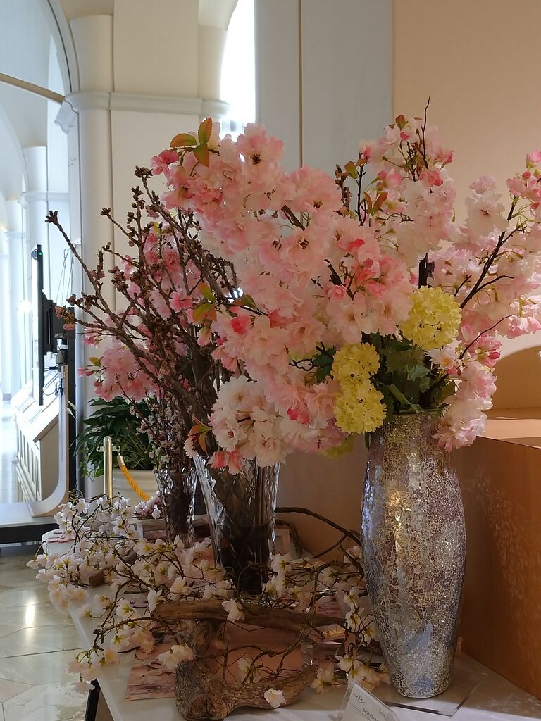 ホテル内には桜モチーフの飾りがいたるところに。