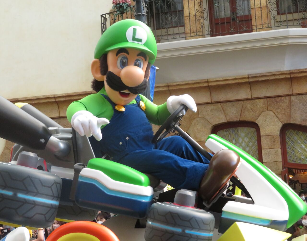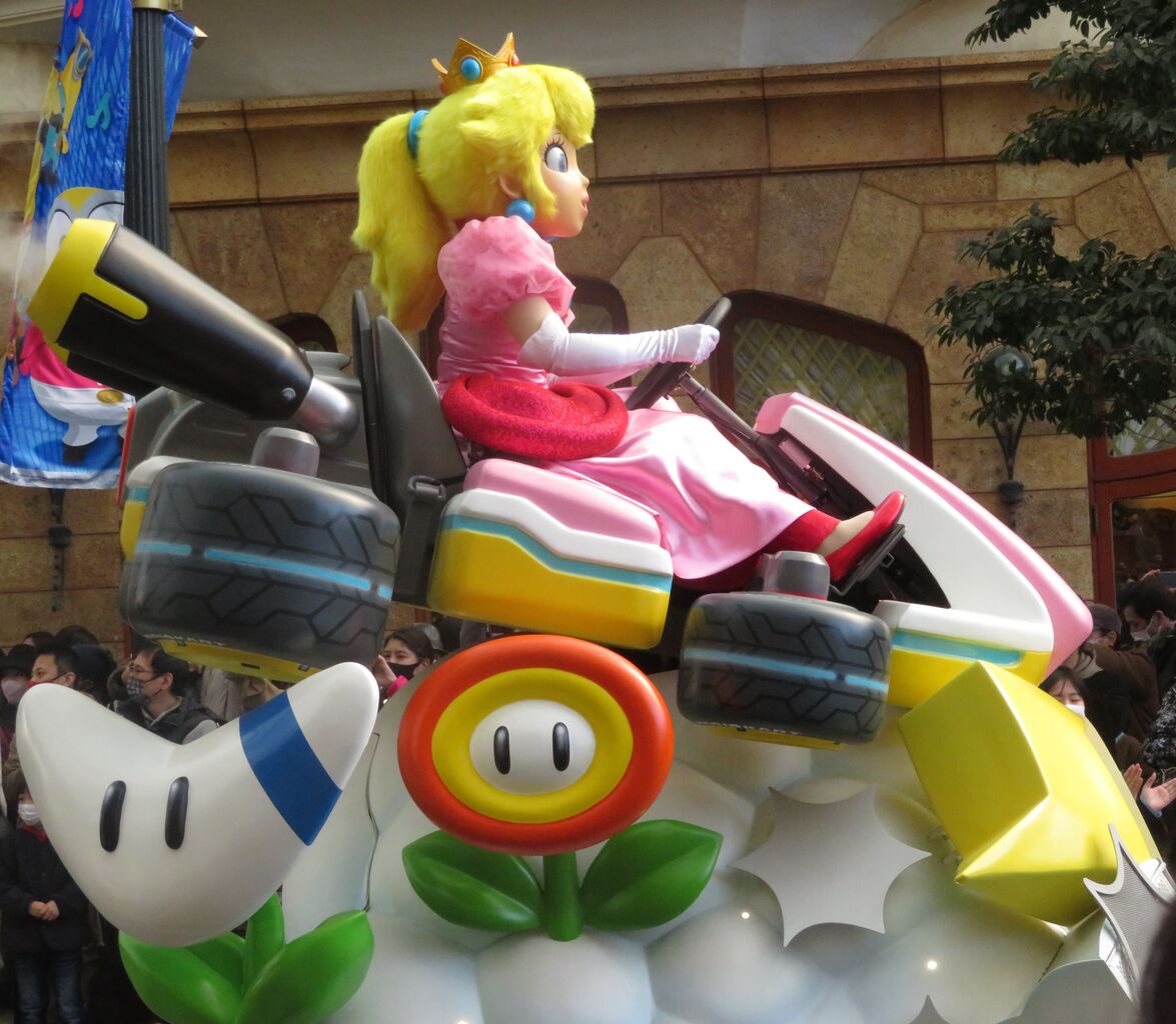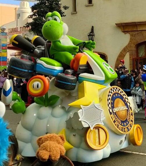 見えてくると大歓声だった、マリオカートのフロート達。