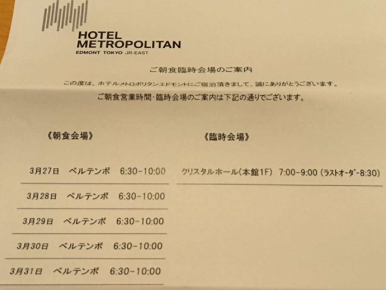 通常時はレストランベルテンポのみですが、混雑時は臨時会場としてクリスタルホールが朝食会場として利用できるようです。