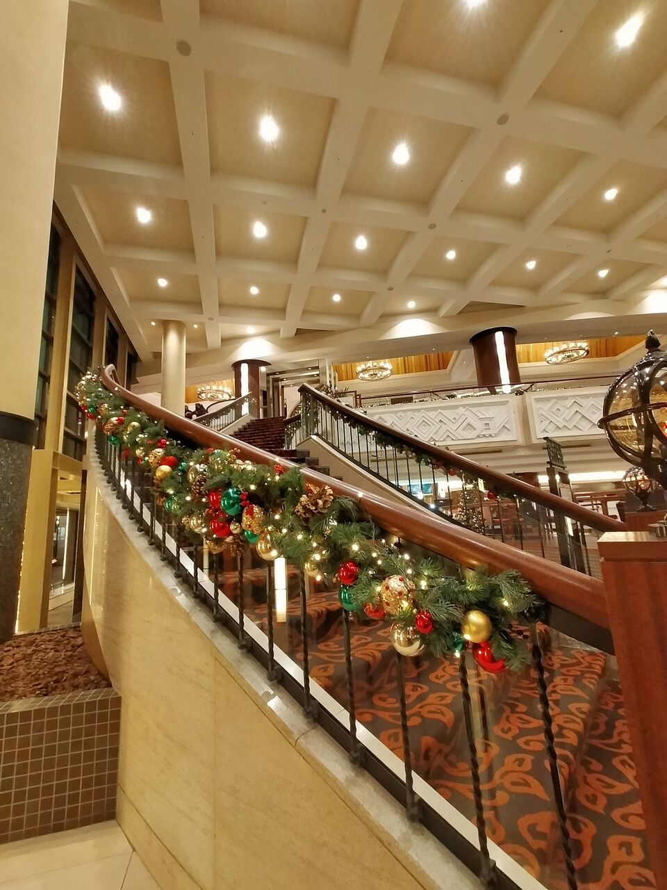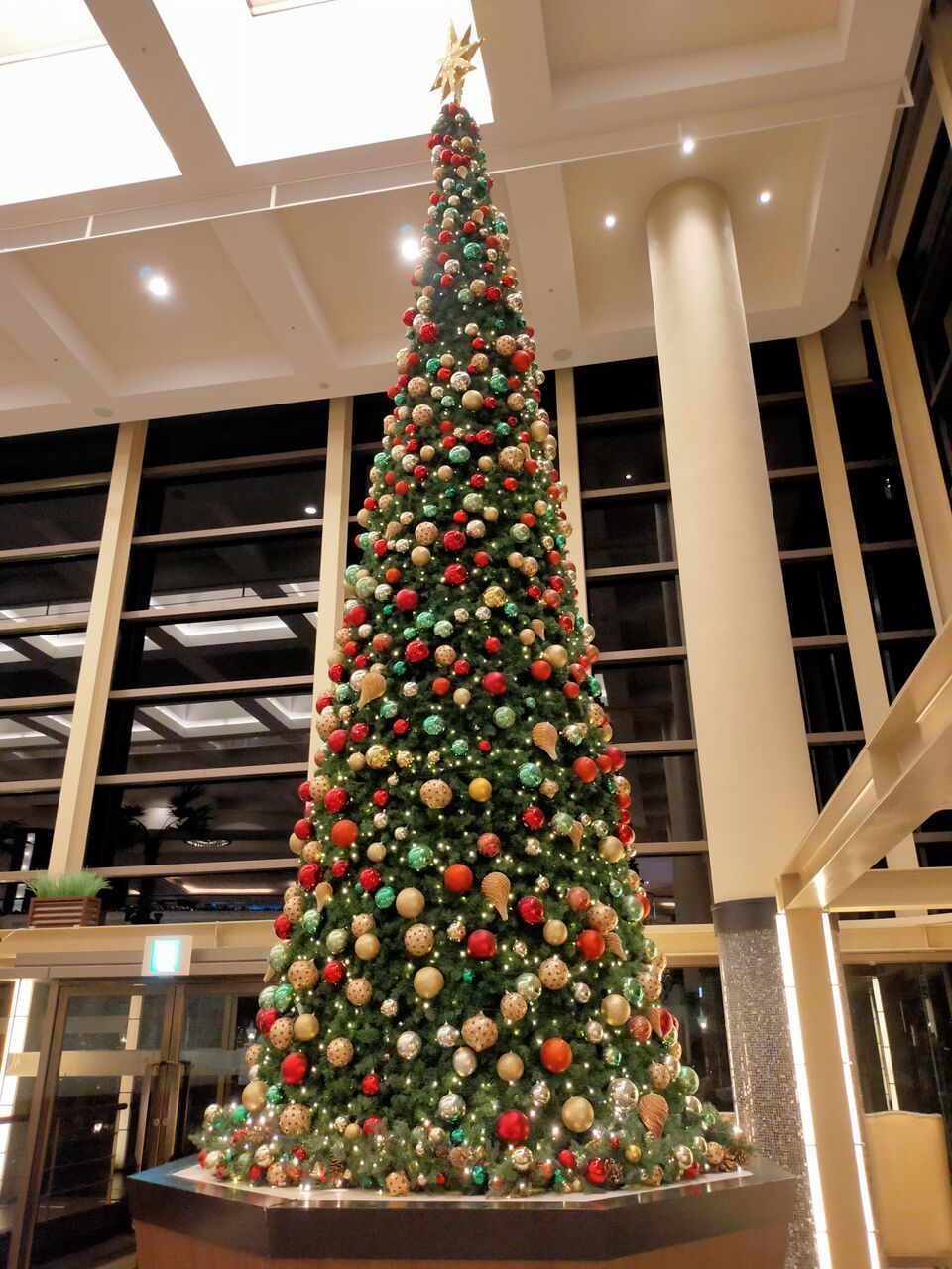 グランカフェ前には、吹き抜けの天井を生かした背の高いツリーが飾られています。