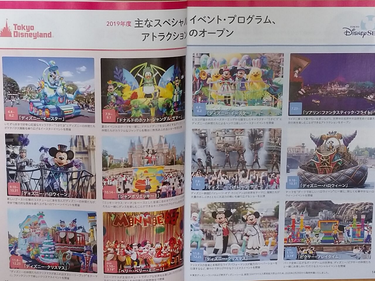 冊子の中には、2019年度の主なイベントやオープンしたアトラクション