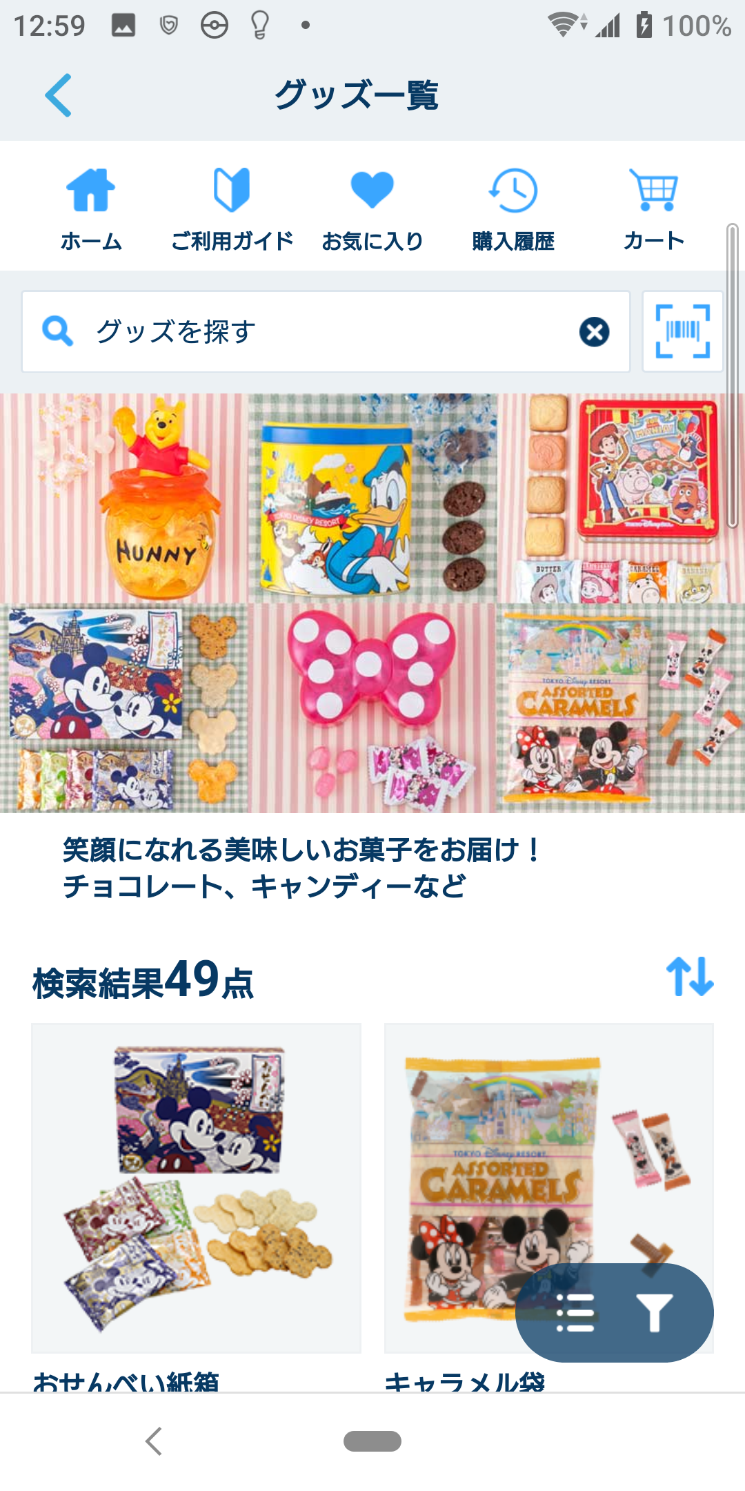 ディズニーアプリの ショッピングから該当ページにアクセスできます。