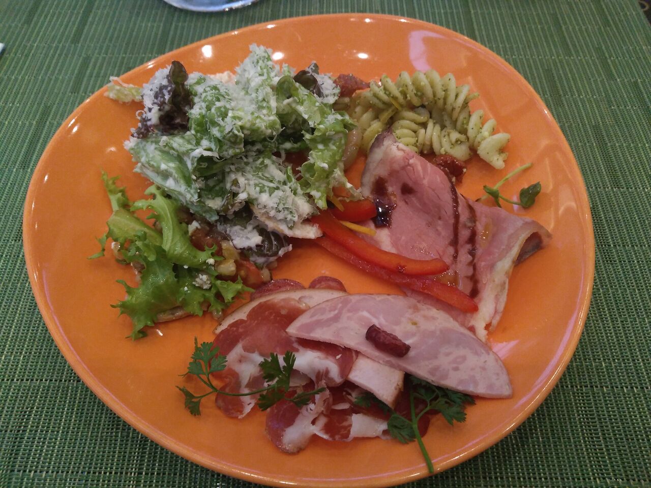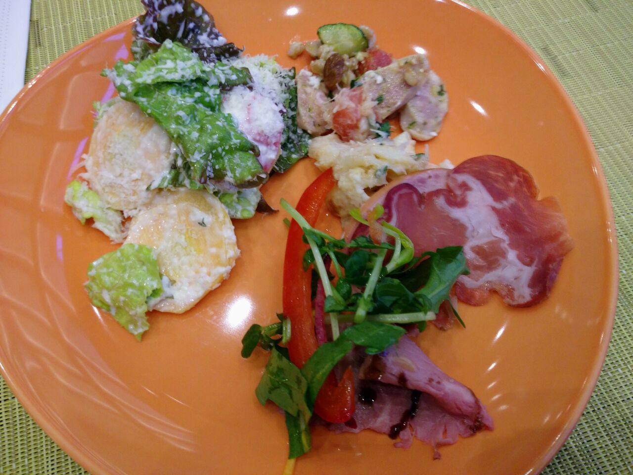 サーモンや、自分でカットするタイプのチーズで1プレート。