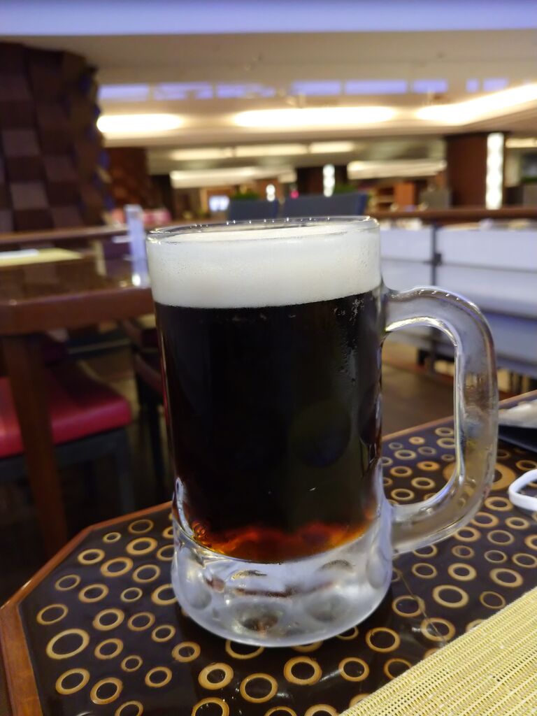 レストランに行く前に、ウォーキングとお風呂の熱を冷ますために、プランについてきたビールをいただく。
