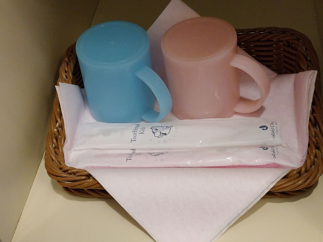 横の棚に、お子さん用のカップと歯ブラシがありました。
