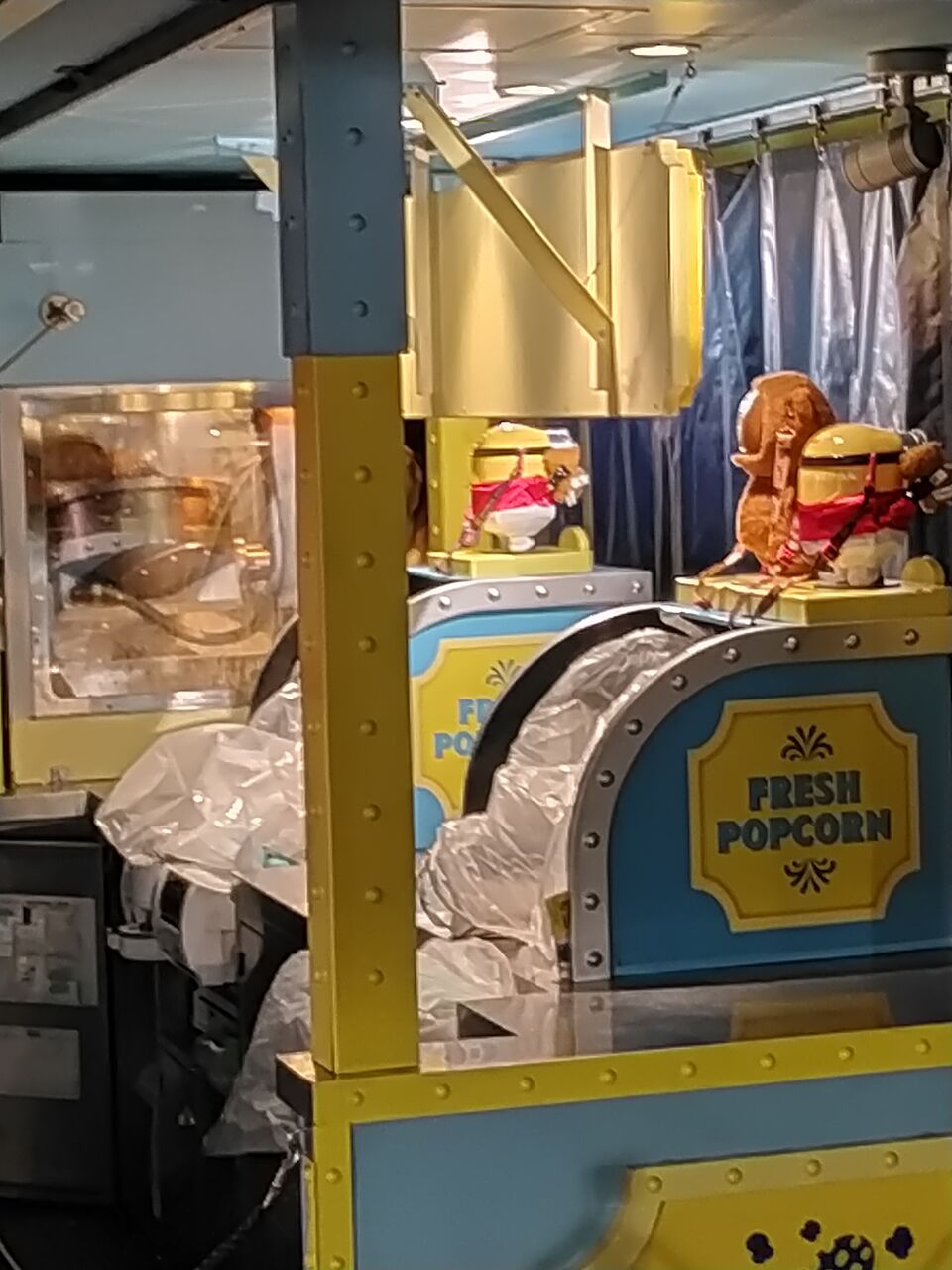ポップコーンワゴンもクローズしていましたが、横から見えるミニオンバケツが可愛い。