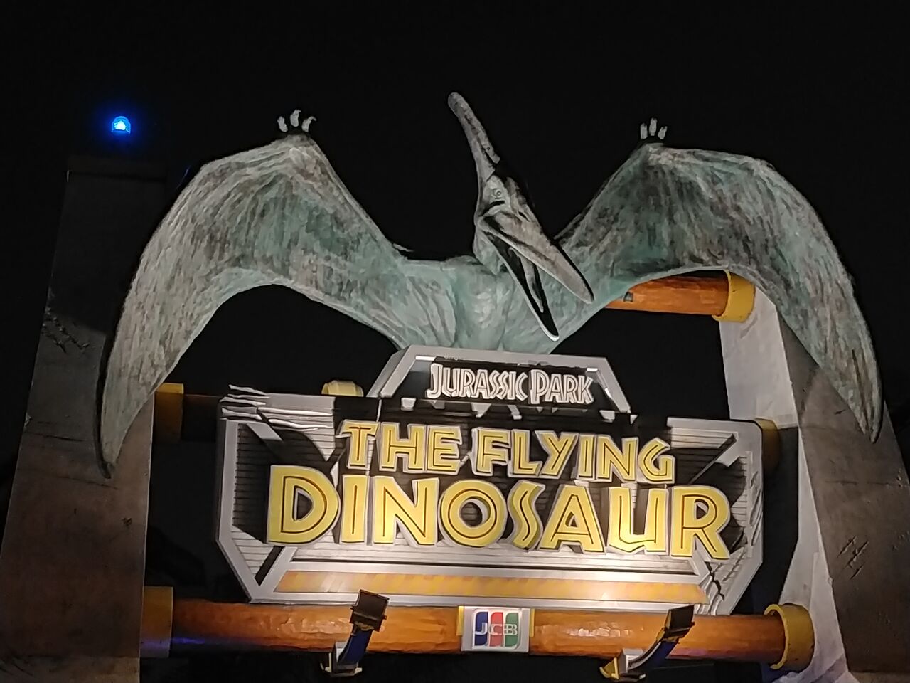 フライングダイナソー すでにラインカットされていますが「学生限定貸切ナイト」の時間帯は何度も何度もリピートできるくらい乗り放題らしい。