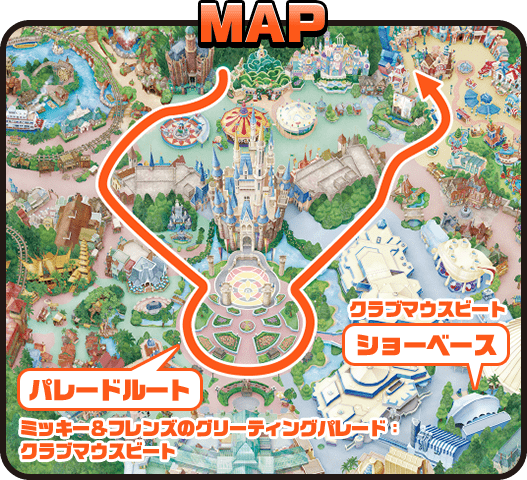 改装されたショーベースでのショーとグリーティングパレードがクラブマウスビートバージョンで実施されます。ドリーミングアップが17時になったのはこのためだったんですねぇ。
